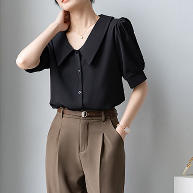 【海外からの取り寄せ】 2025新作 トップス 大きい襟 ブラウス 上品 きれいめ カジュアル シャツ きれいめ シフォン #[shirt498_21800]【送料込み】【250611】