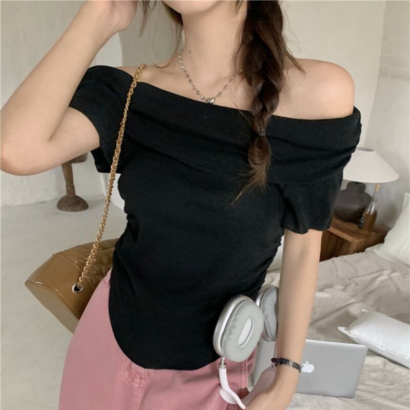 【海外からの取り寄せ】2025新作 Tシャツ カットソー レディース 肩見せ ショート丈 春 夏 無地 オフショルダー サマーブラウス #[tops615_8800]【送料込み】【250712】