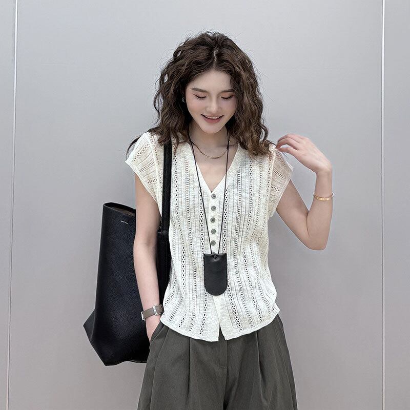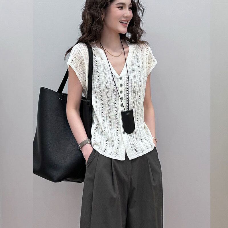 ・通気性の良い透かし編みデザインで、涼しげな着心地を実現。