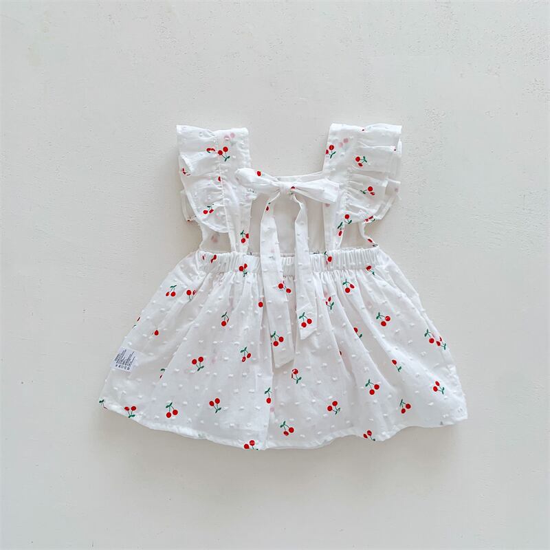 【海外からの取り寄せ】ins 夏新作 ベビー服 女の子 スクエアネック 背見せ ロンパース 可愛い 子供服 チェリー柄 #[ckd1094666_15300]【送料込み】【250617】