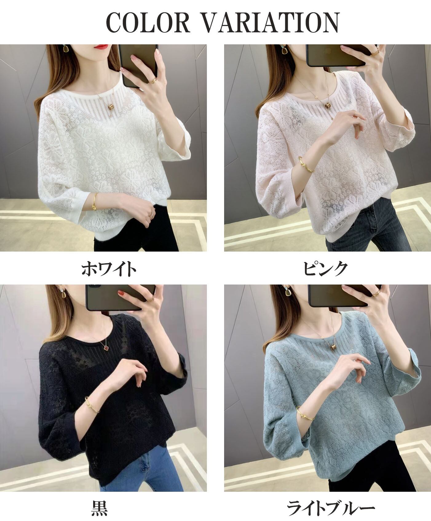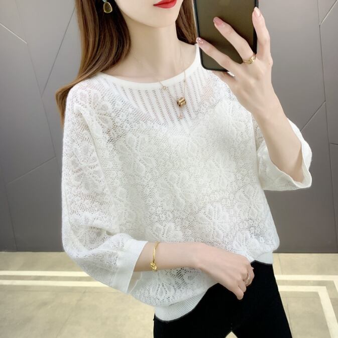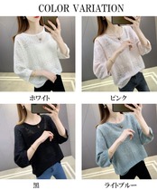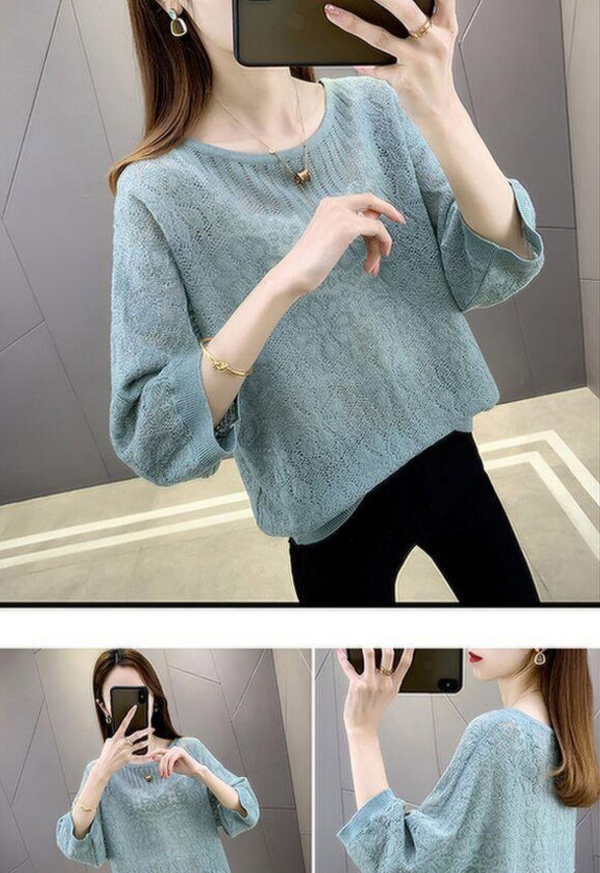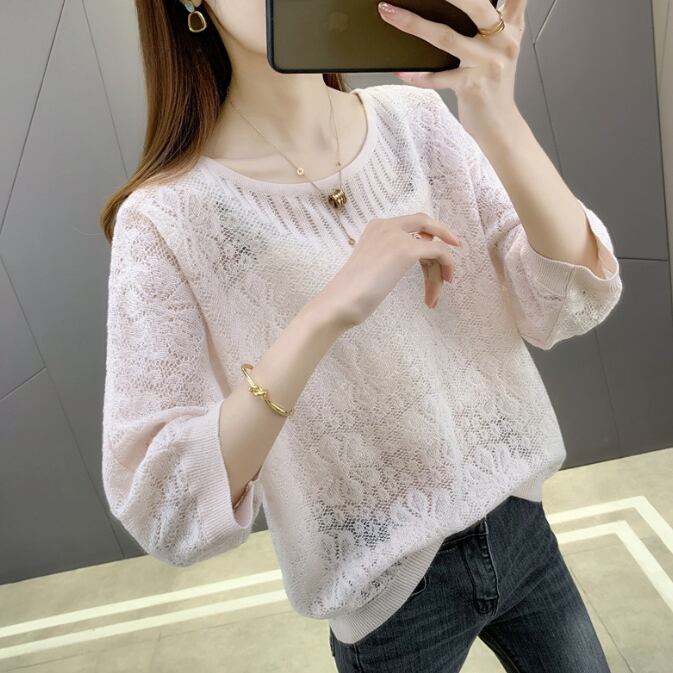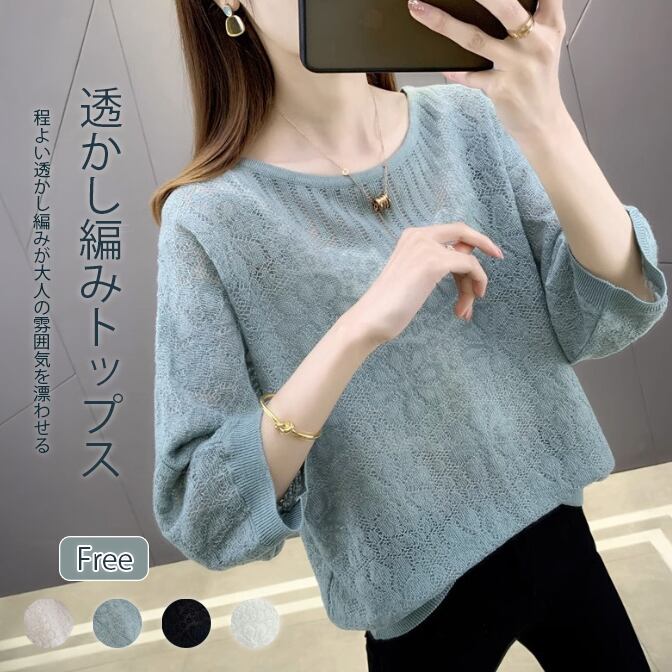 【海外からの取り寄せ】 2025新作 レディース 七分袖透かし編み クルーネック 春夏秋 ゆったりニット 薄手 トップス #[tops618_11800]【送料込み】【251012】