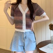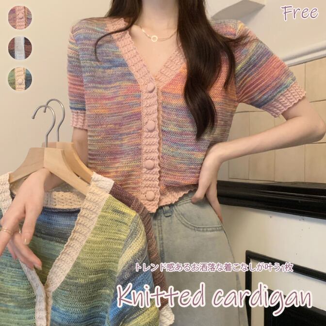 【海外からの取り寄せ】 2025新作 レディース グラデーション 半袖ニット カーディガン ショート丈 大人 可愛い #[cardigan202_16800]【送料込み】【250616】