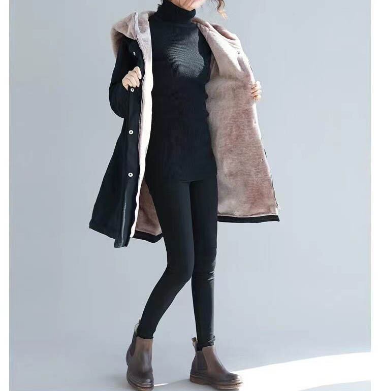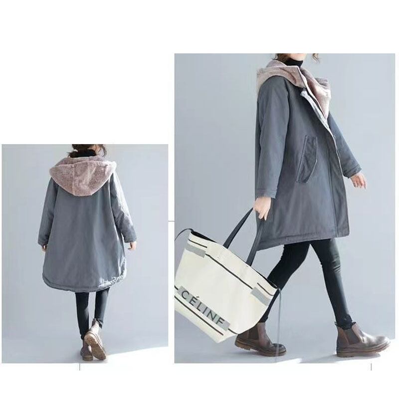 小顔効果抜群の大きめフードつき 裏起毛コート