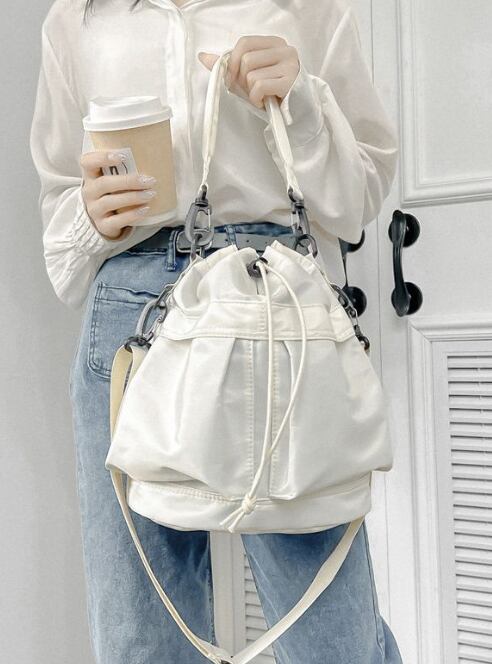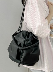 ・丸いフォルムがかわいいバケツ型バッグ。