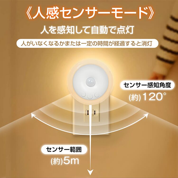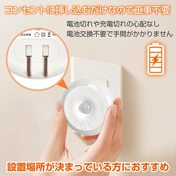 センサーライト 人感センサーライト 室内 玄関 廊下 コンセント LED 給電式 トイレ 明暗 #[sl098_14300]【送料込み】【250606】