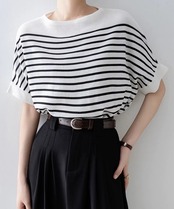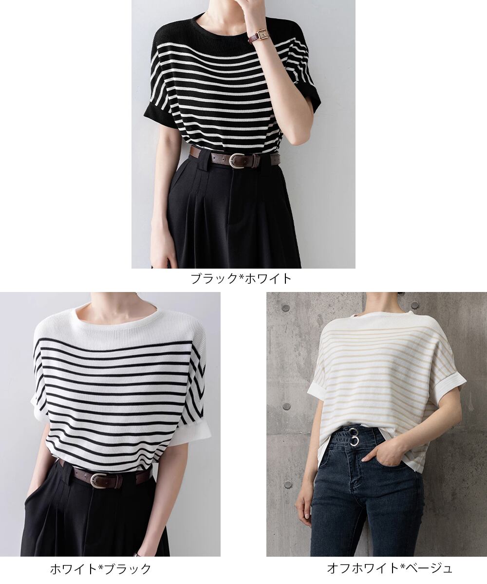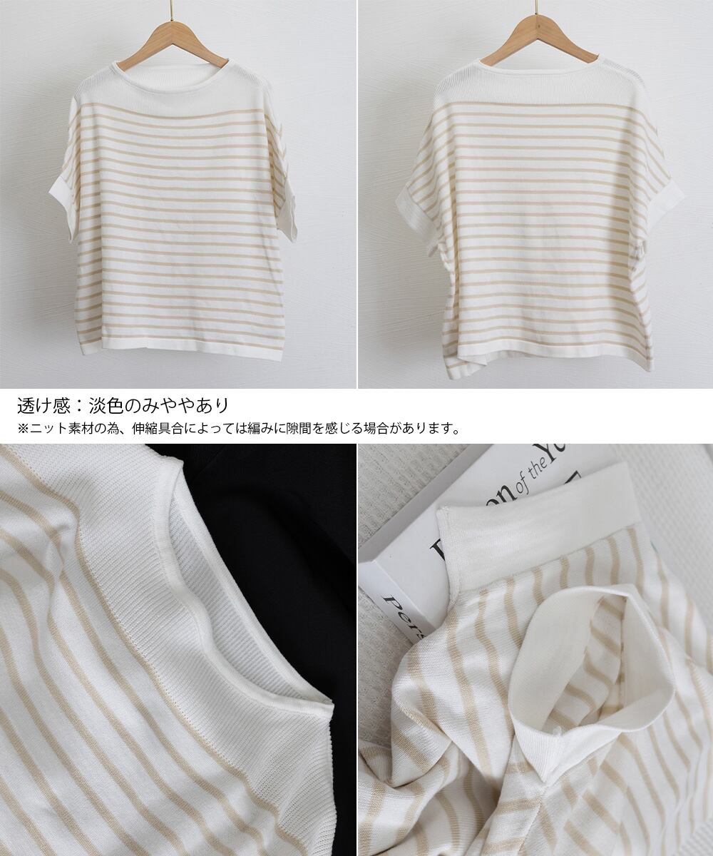【日本倉庫からの発送】 ボーダー柄サマーニット ドルマンスリーブ #[24TPS-042_20300]【送料込み】【250628】