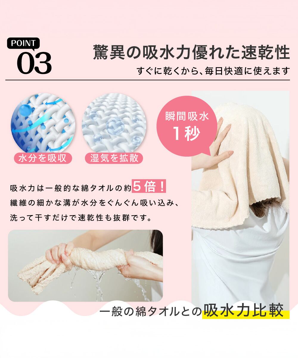 瞬間吸水タオル 時短 髪用タオル ドライヤー短縮タオル お風呂上がりバスタオル 持ち運び便利大判タオル 美髪ヘアキャップ