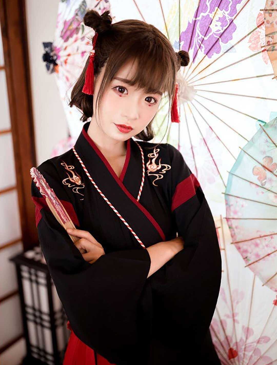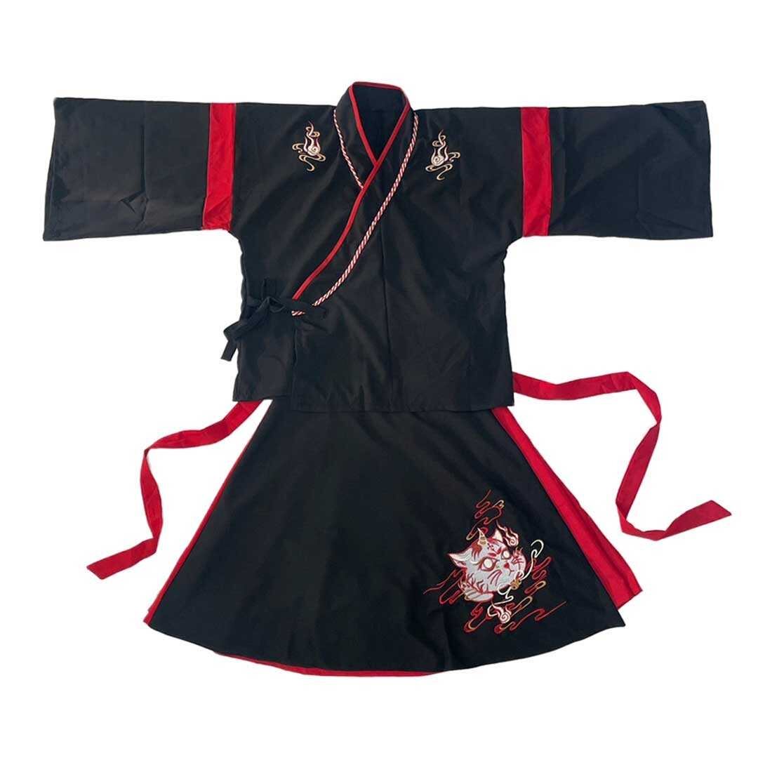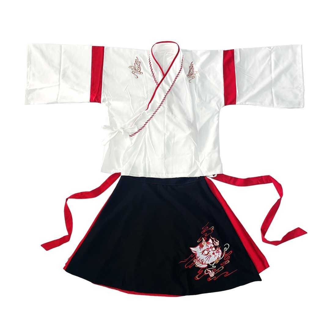 和服 猫 ツノ トップス スカート 上下セット ホワイトorブラック 和装 サクラ ダンス衣装 韓国ファッション