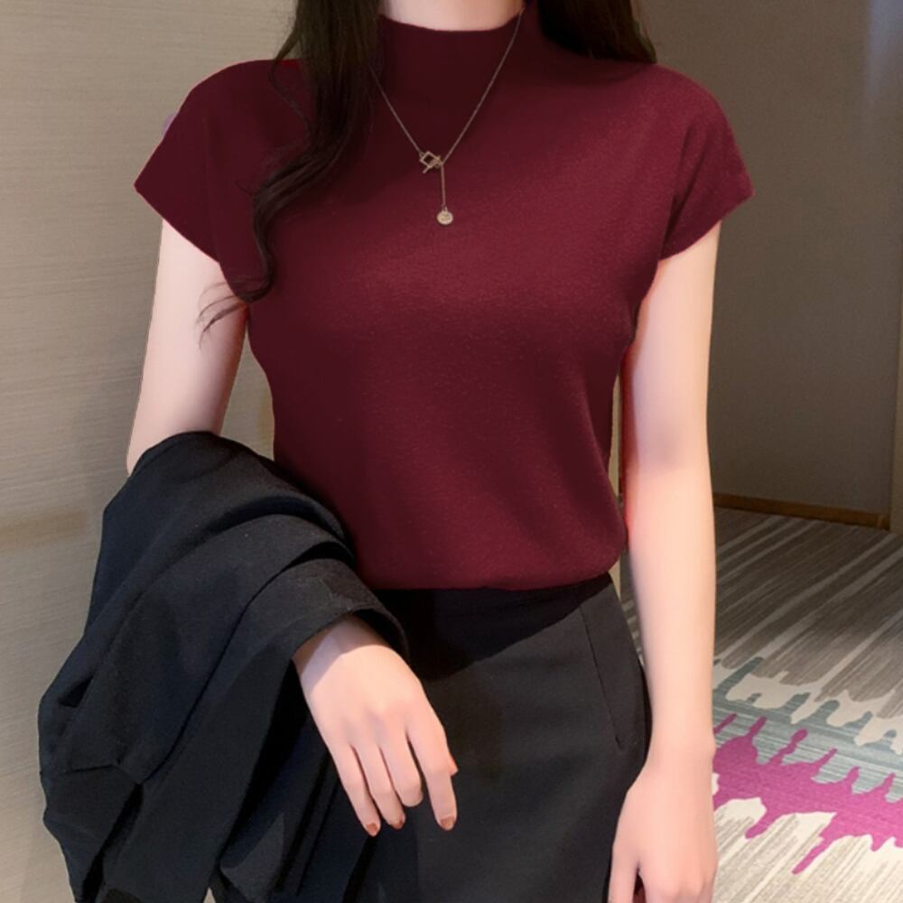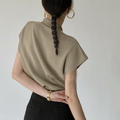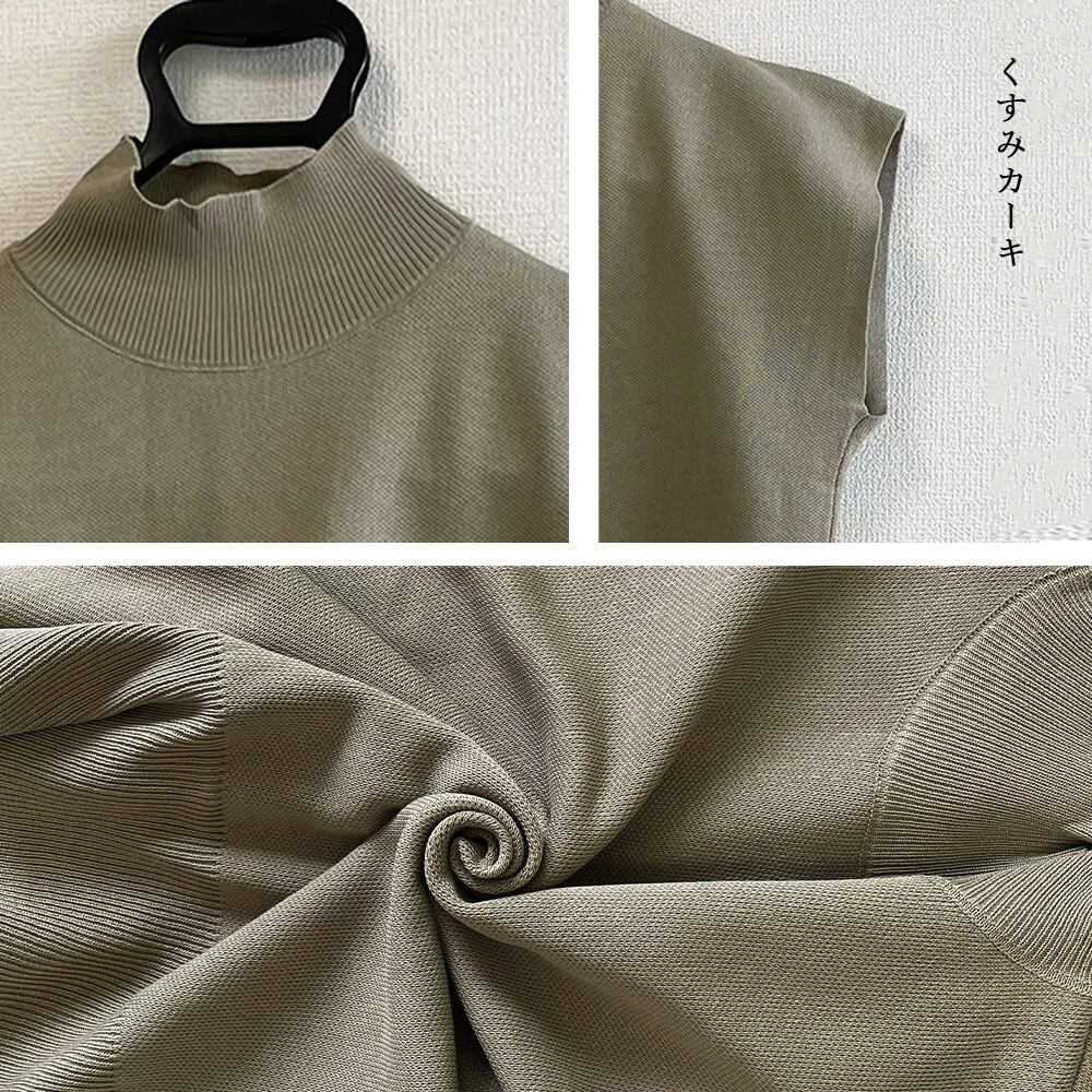 ニット トップス ハイネック ニットソー 無地 フレンチスリーブ 韓国ファッション 春秋 夏服