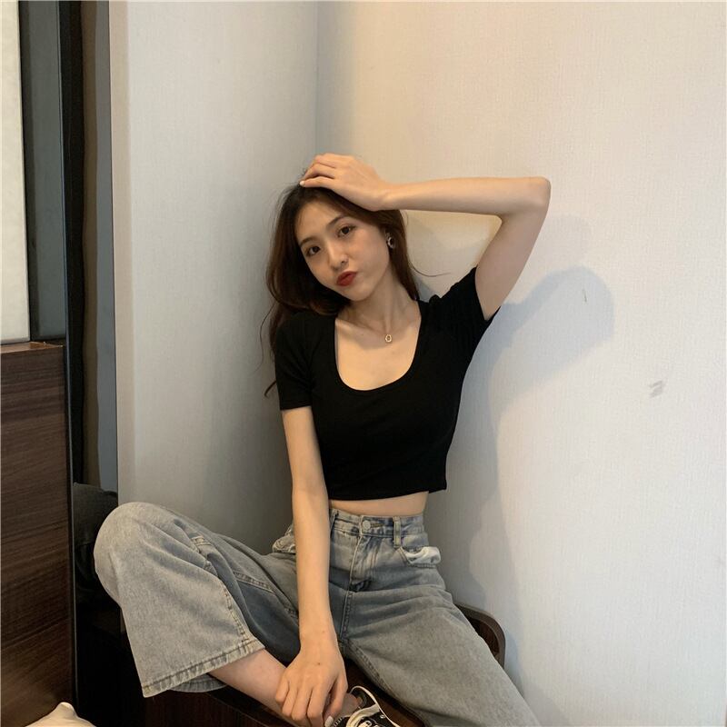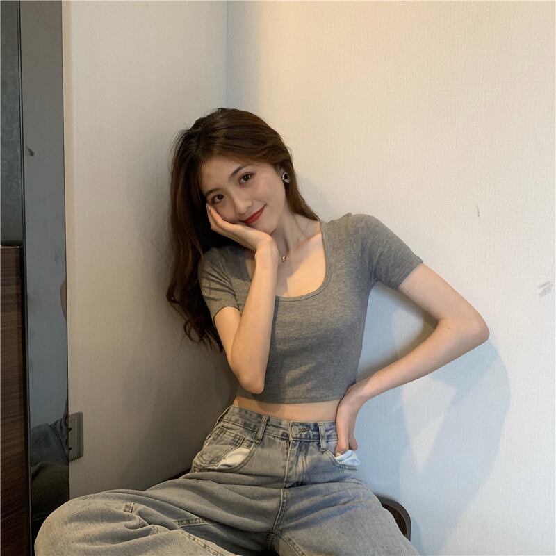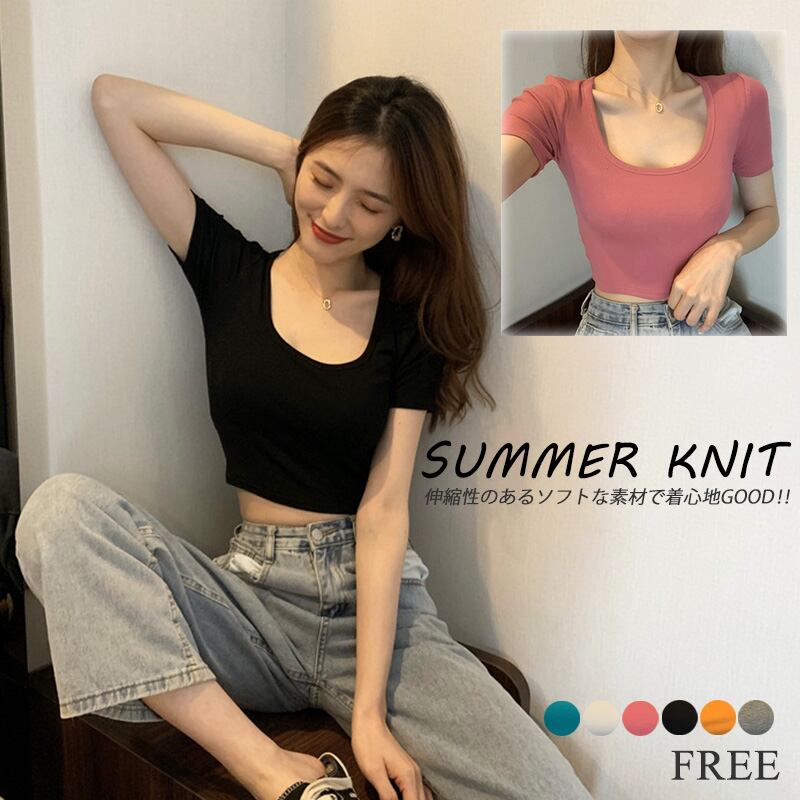 【海外からの取り寄せ】2022新作 半袖 ニットTシャツ サマーニット ショート丈 無地 シンプル ラウンドネック トップス 伸縮 #[shirt322_4800]【送料込み】【250712】