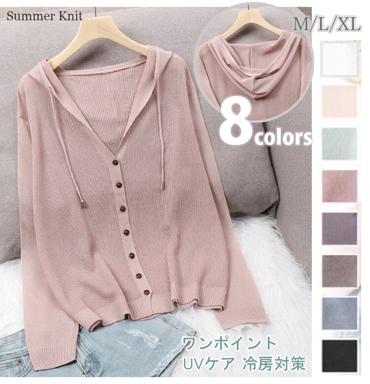 【海外からの取り寄せ】2021新作 レディース シアー サマーニット フードニット カーディガン 羽織 冷房対策 UV 紫外線 #[cardigan053_11800]【送料込み】【250712】