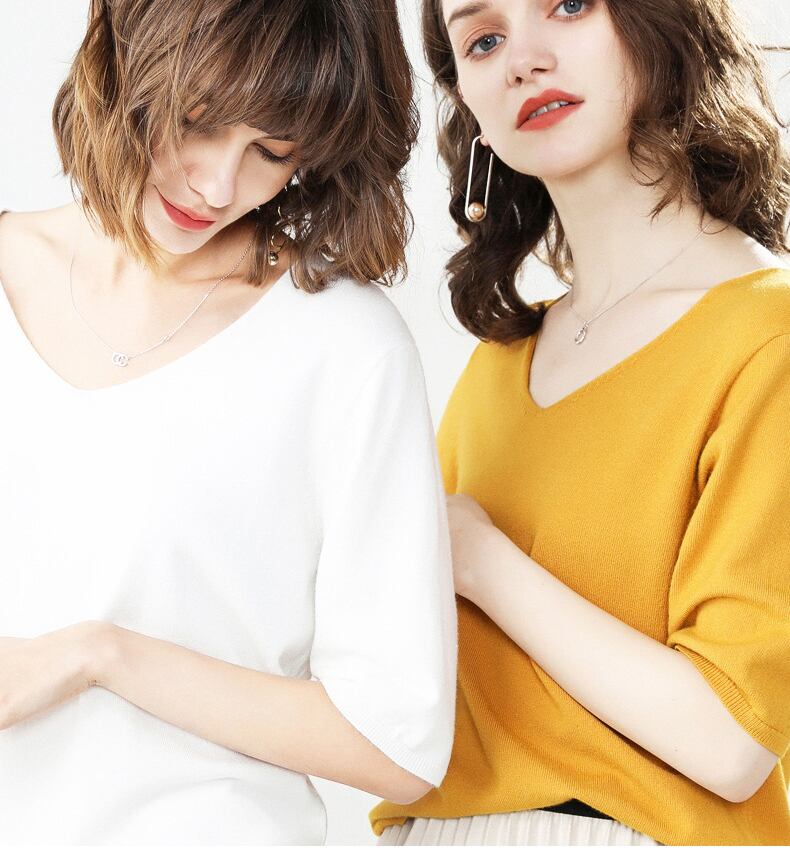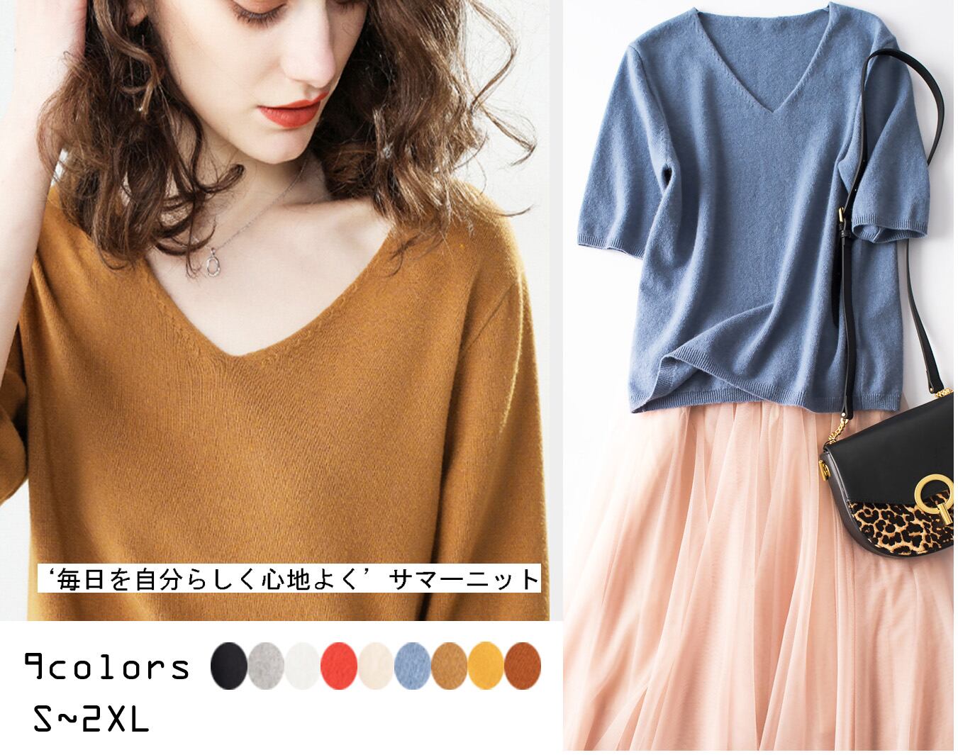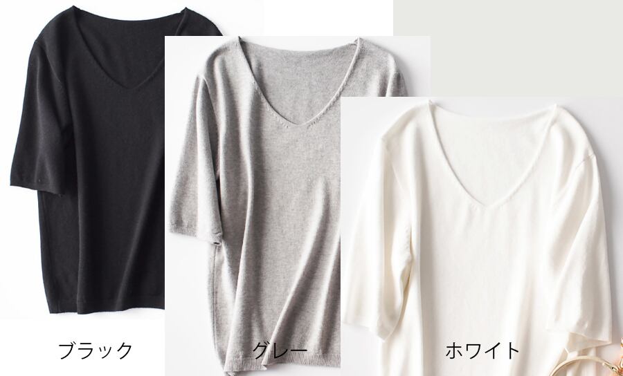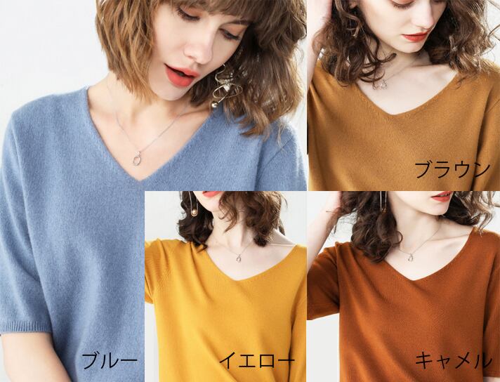 【海外からの取り寄せ】なめらかニット 新作 Vネック ゆったり 無地 薄手 デイリートップス サマーニット #[shirt144_11800]【送料込み】【250712】