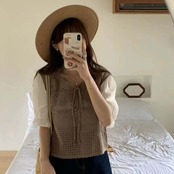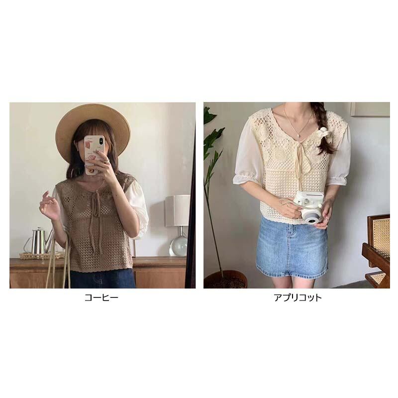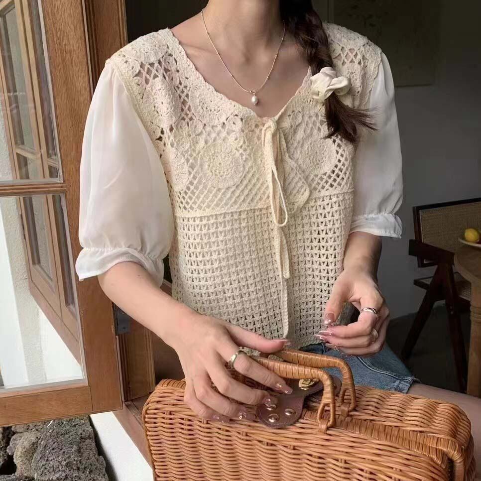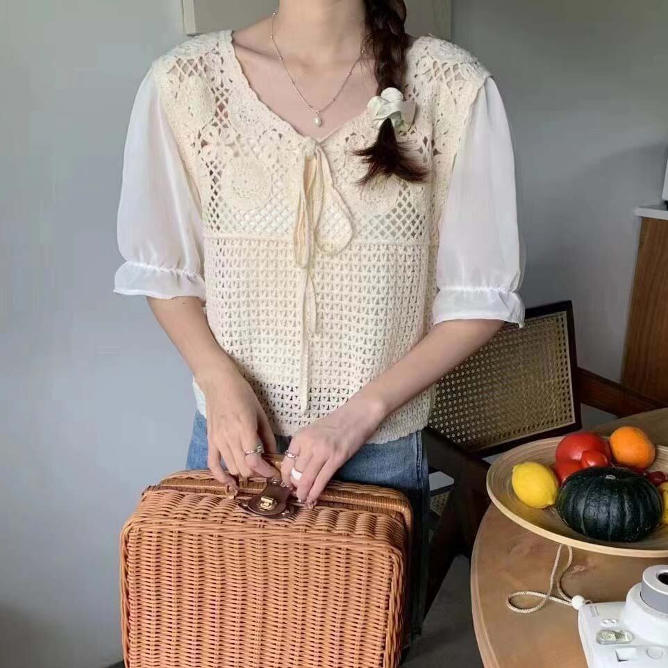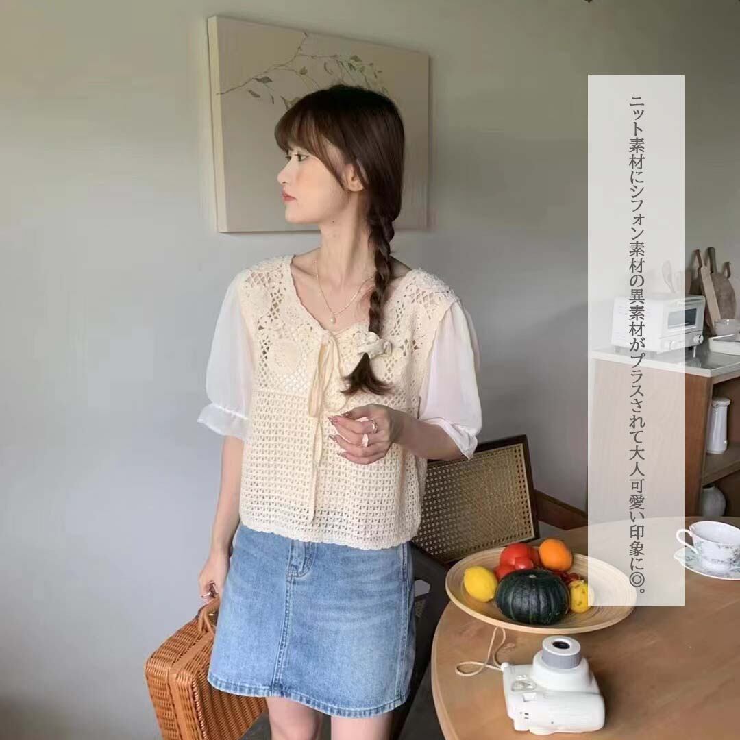 【海外からの取り寄せ】2023新作 レディース トレンド トップス サマーニット クロシェ 透かし編み シフォン ドッキング #[shirt393_13800]【送料込み】【250712】