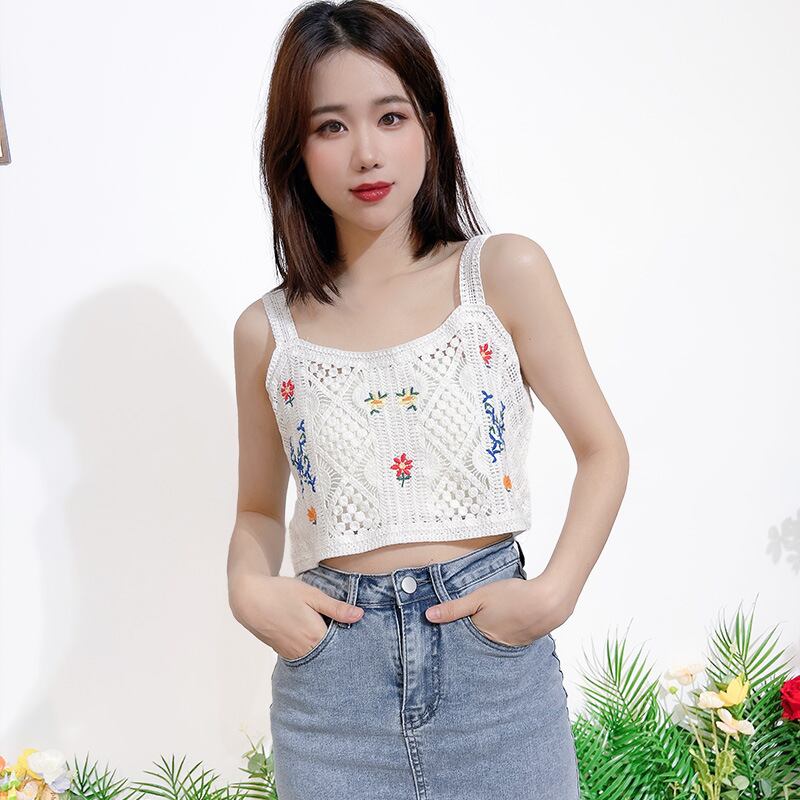 【海外からの取り寄せ】2023新作 レディース トレンド トップス サマーニット 大人ガーリー キャミソール カギ編み 刺繍 白 #[shirt385_9800]【送料込み】【250712】