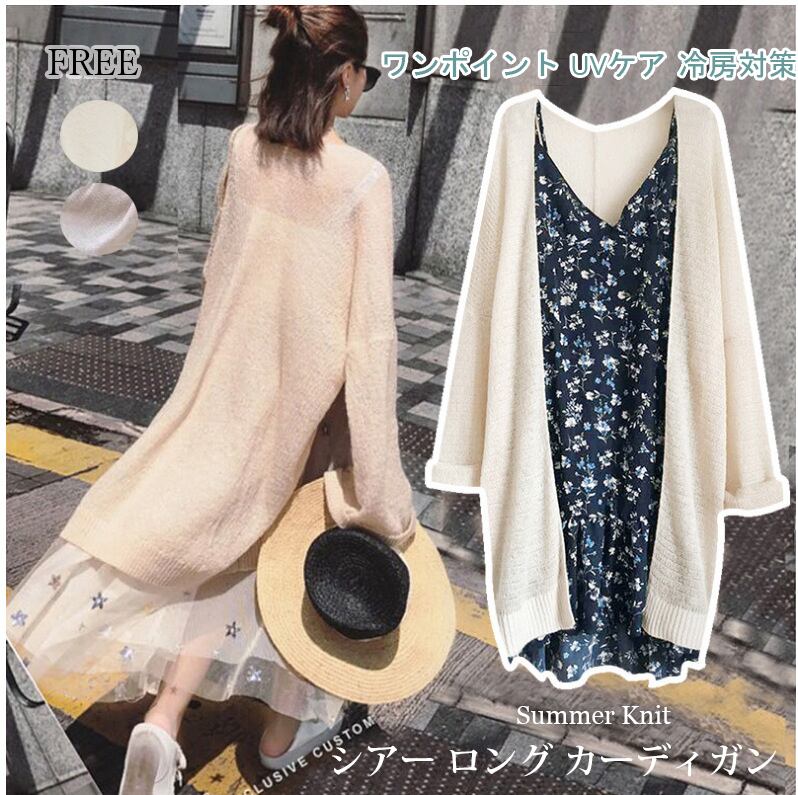 ワンポイント、UVケア、冷房対策 シアーサマーニットロングカーディガン