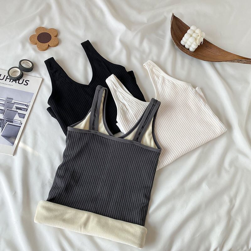 【海外からの取り寄せ】2023新作 下着 あったか 裏起毛 伸縮性 タンクトップ 保温 ウォーム インナー 肌着 寒さ対策 秋冬 黒 #[inner174_5800]【送料込み】【250716】