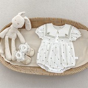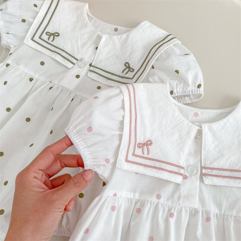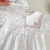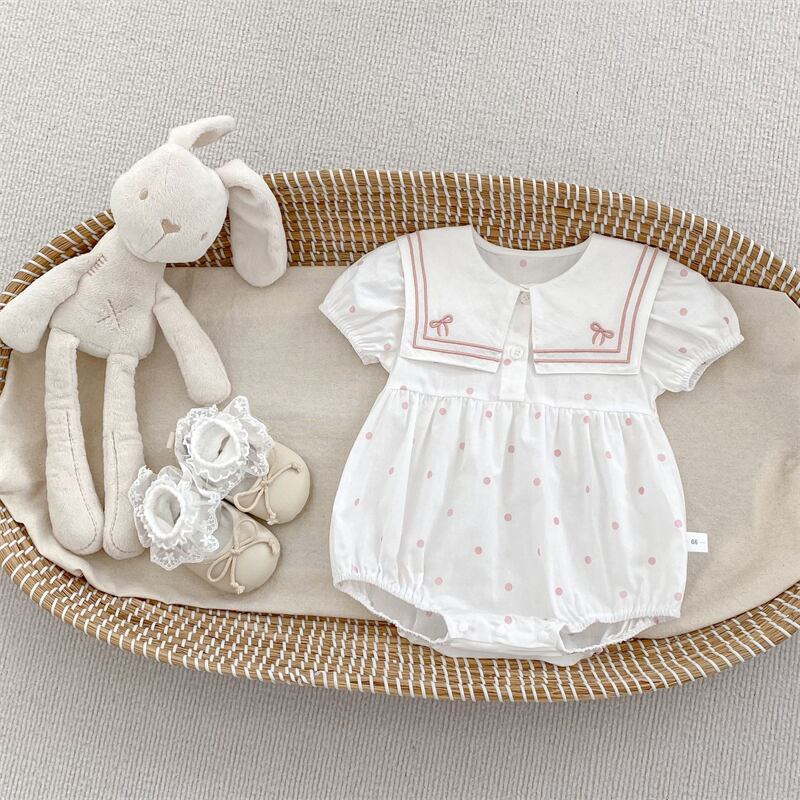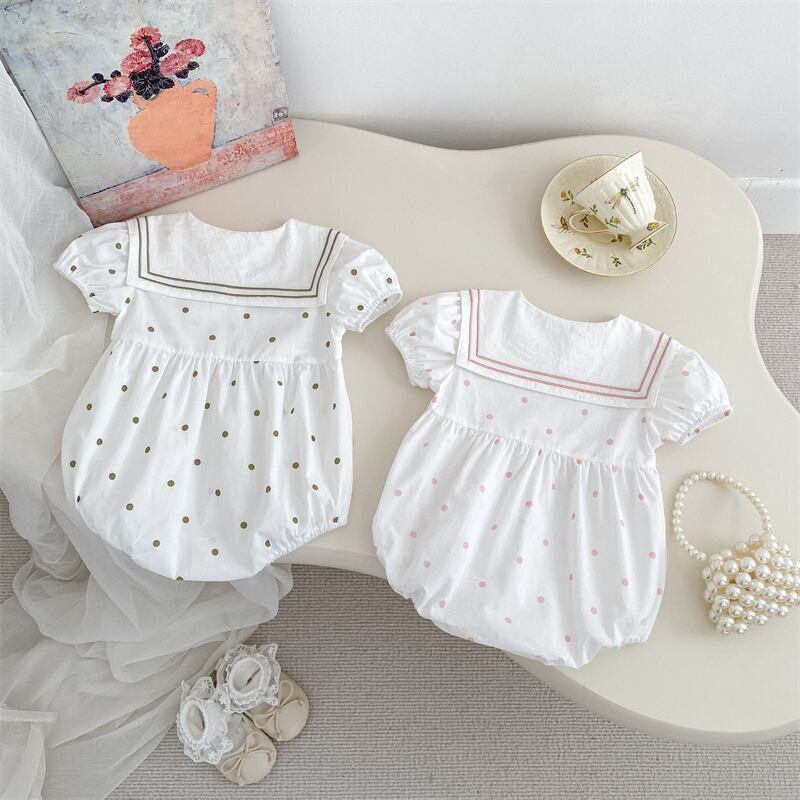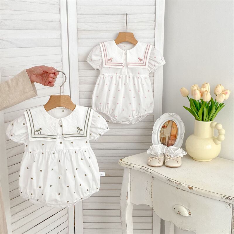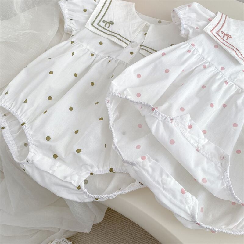 【海外からの取り寄せ】2025夏新作 ベビー服 女の子 セーラーカラー 半袖 ロンパース 子供服 可愛い 水玉 刺繍リボン柄 #[ckd1094687_17200]【送料込み】【250725】