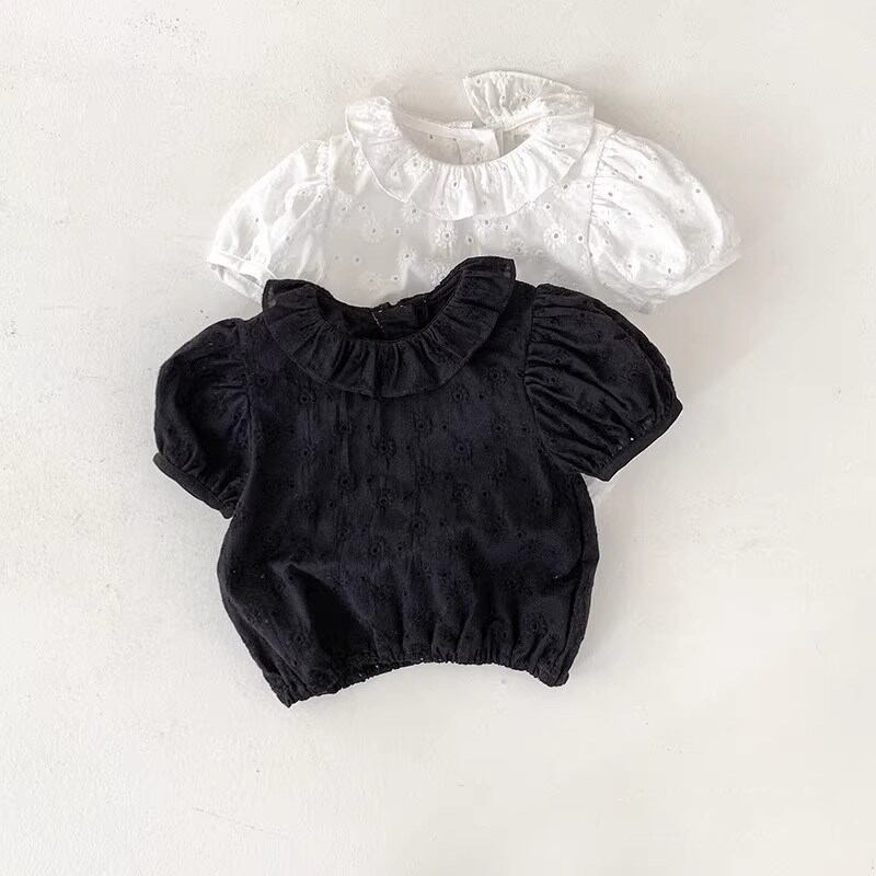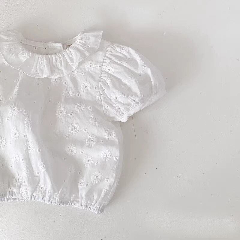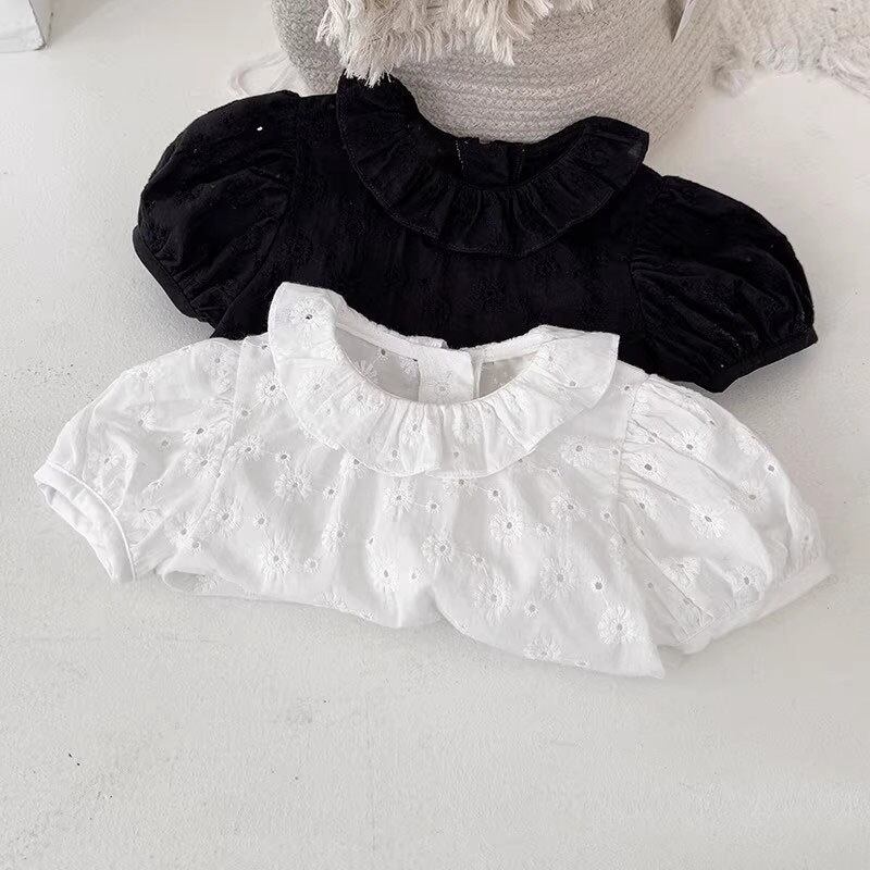 【海外からの取り寄せ】2025夏新作 子供服 女の子 レース透かし ラッフルカラー 半袖 ブラウス トップス 可愛い シャツ #[ckd1094684_16200]【送料込み】【250725】