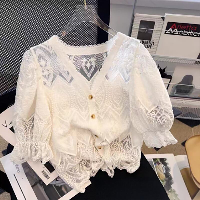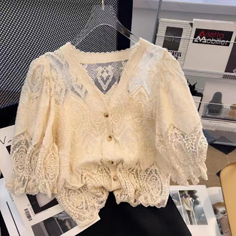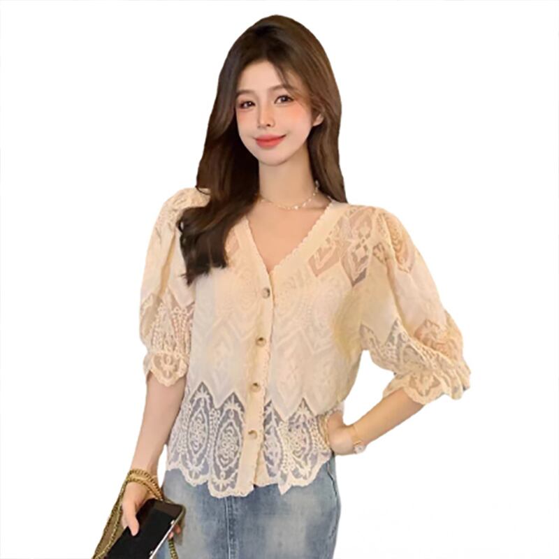 【海外からの取り寄せ】 2025新作 レディース トップス ブラウス Vネック レース 5分袖 プルオーバー 可愛い 刺繍 #[tops622_13800]【送料込み】【250616】