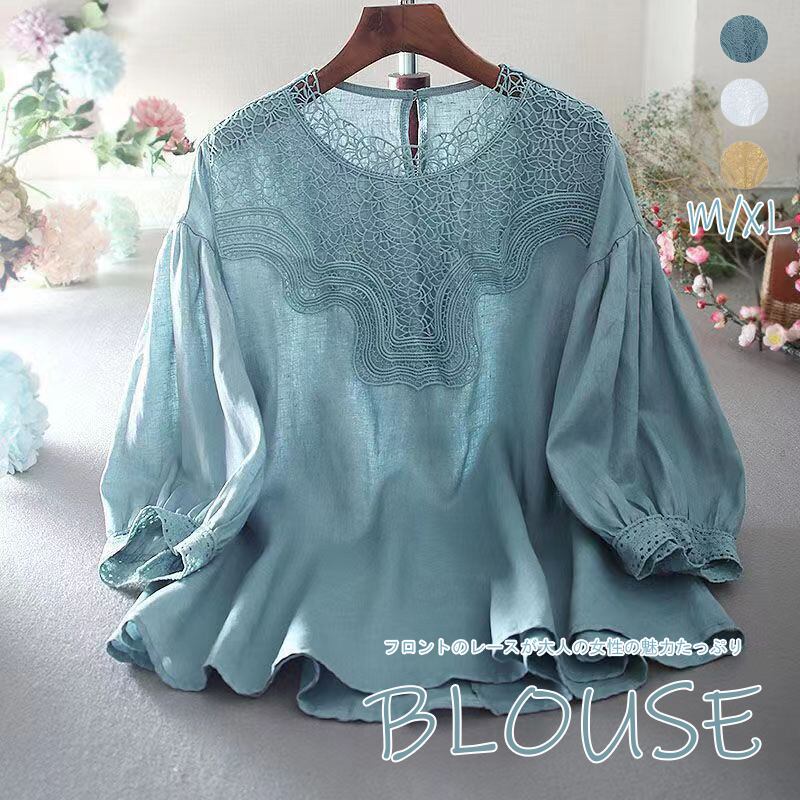 ・フロントのレースがレトロでおしゃれな雰囲気のブラウス。