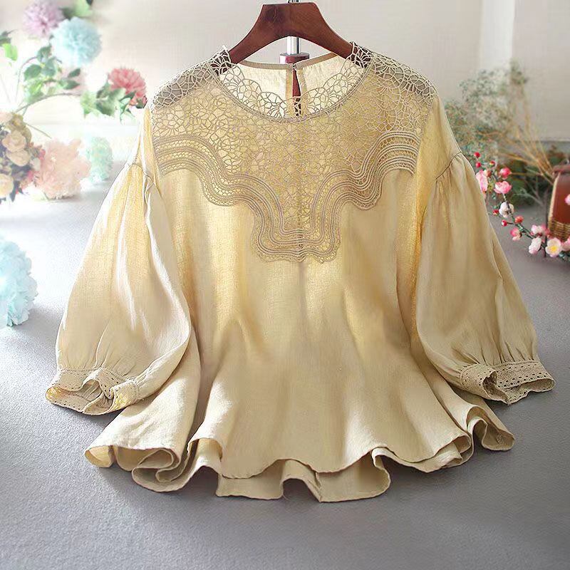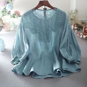 【海外からの取り寄せ】シャツ レディース ブラウス トップス レース ししゅ おしゃれ 七分袖 ノーカラー 薄手 カジュアル #[tops623_21800]【送料込み】【250616】