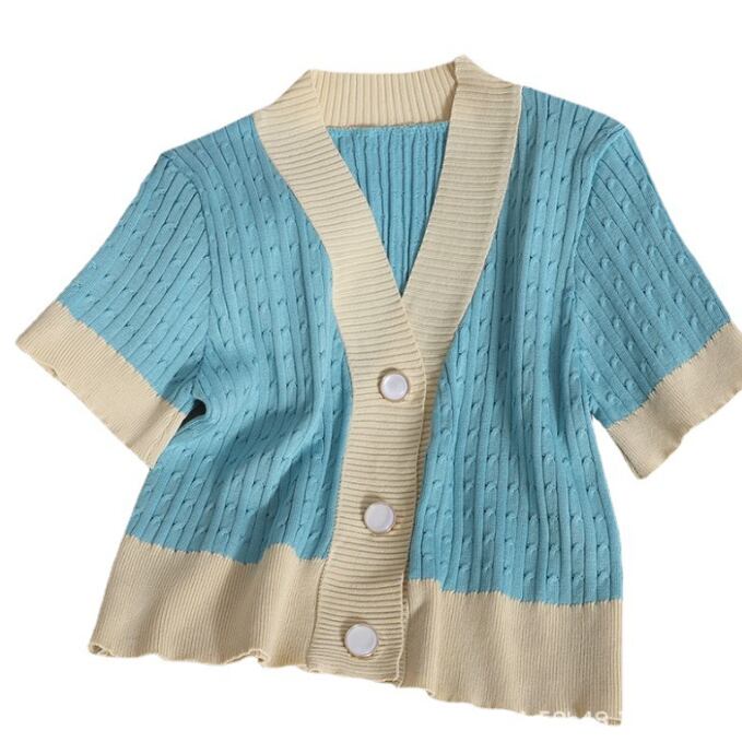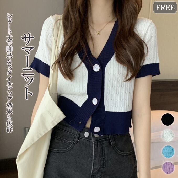 【海外からの取り寄せ】 2025新作 レディース 半袖ニット カーディガン Vネックボタン ショート丈 大人 可愛い #[cardigan204_12800]【送料込み】【250618】