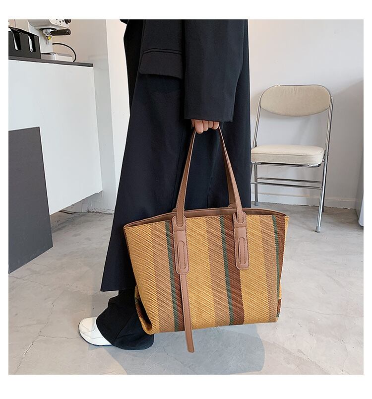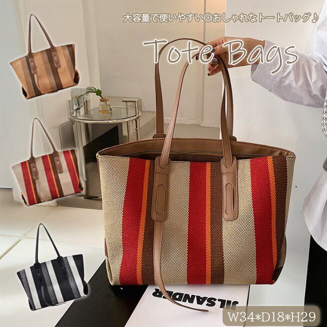【海外からの取り寄せ】 2025新作 ショルダーバッグ トートバッグ 肩掛け 帆布 キャンバス 丈夫 ストライプ 縞々 #[bag1755_21900]【送料込み】【250616】