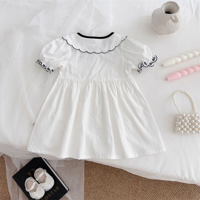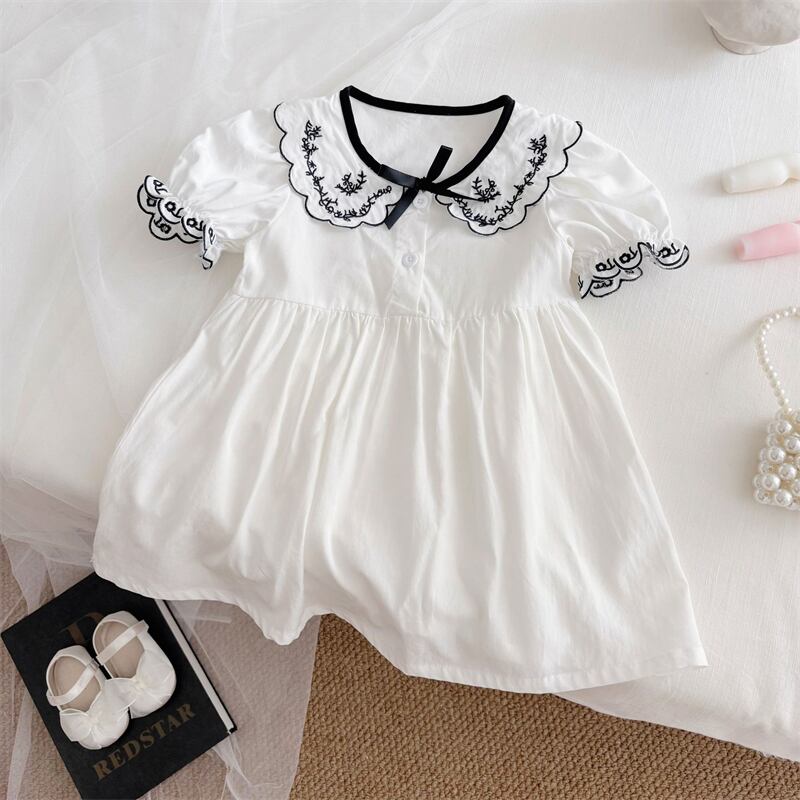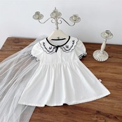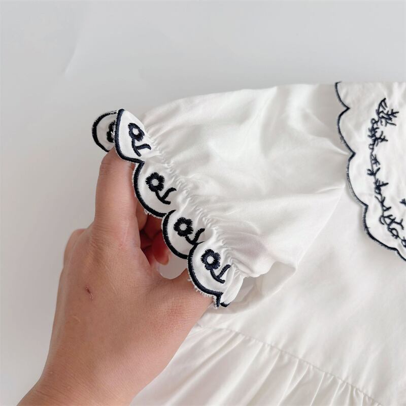 【海外からの取り寄せ】2025夏新作 女の子 刺繍花柄 ピーターパン襟 半袖 ワンピース 子供服 可愛い おしゃれ フリル袖 #[ckd1094689_15800]【送料込み】【250727】