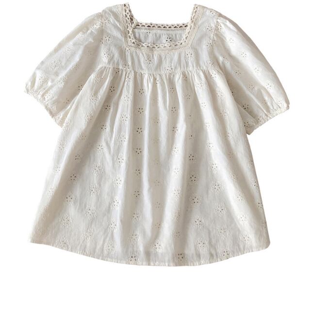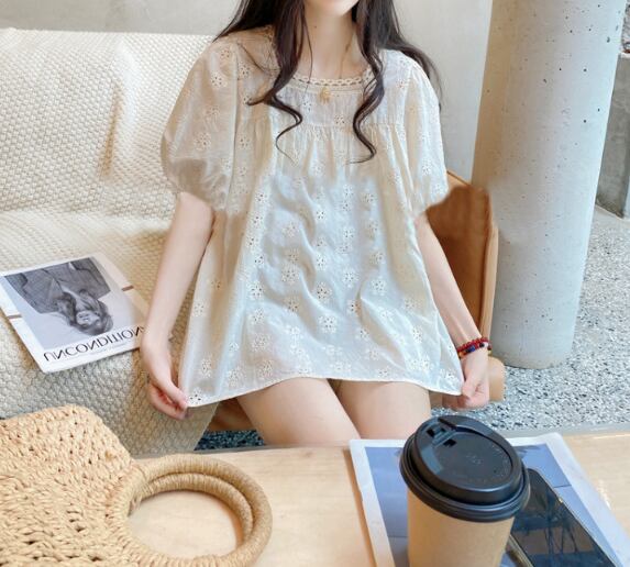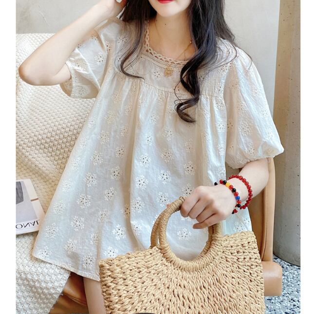 【海外からの取り寄せ】半袖 シャツブラウス 5分袖 フリル プルオーバー 可愛い フェミニン 体型カバー かぎ編み トップス #[tops627_17800]【送料込み】【250616】