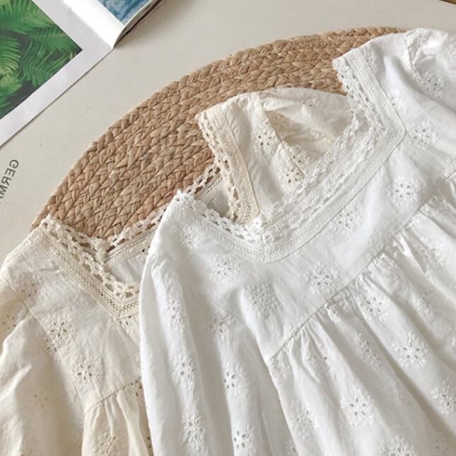 ・シンプルで可愛いレース刺繍とユニークな仕立て。