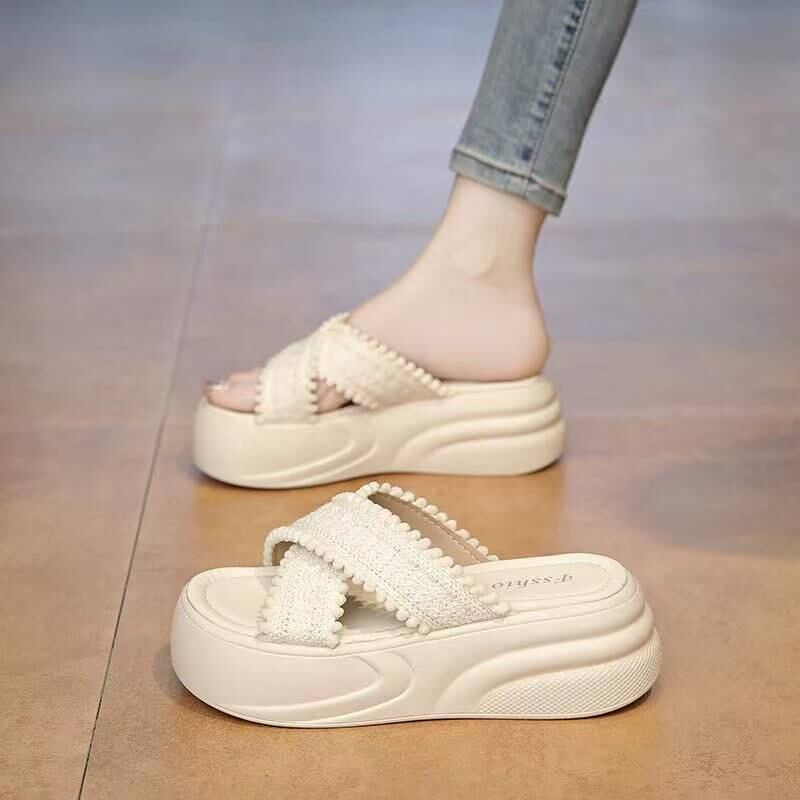 【海外からの取り寄せ】 2025新作 レディース サンダル スタイルアップ クロッシー編み厚底 美脚 脚長 フラット #[sandal717_25800]【送料込み】【250616】