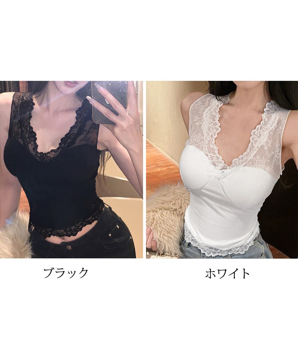 セクシーレースインナー Vネックタンクトップ レディース 柔らかインナー 快適 レーストップス カジュアル おしゃれ