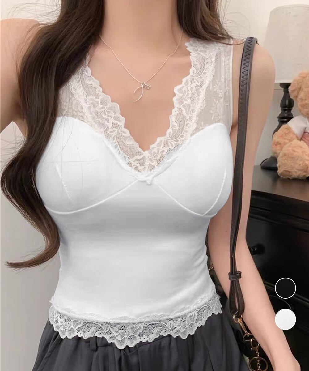 【日本倉庫からの発送】 レースブラトップ パッド付きトップス #[98CHUNC-003_12900]【送料込み】【250702】