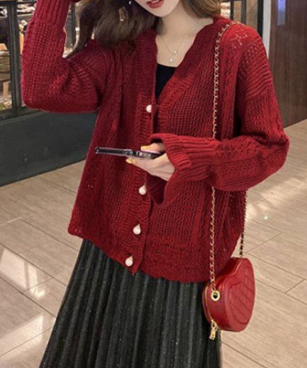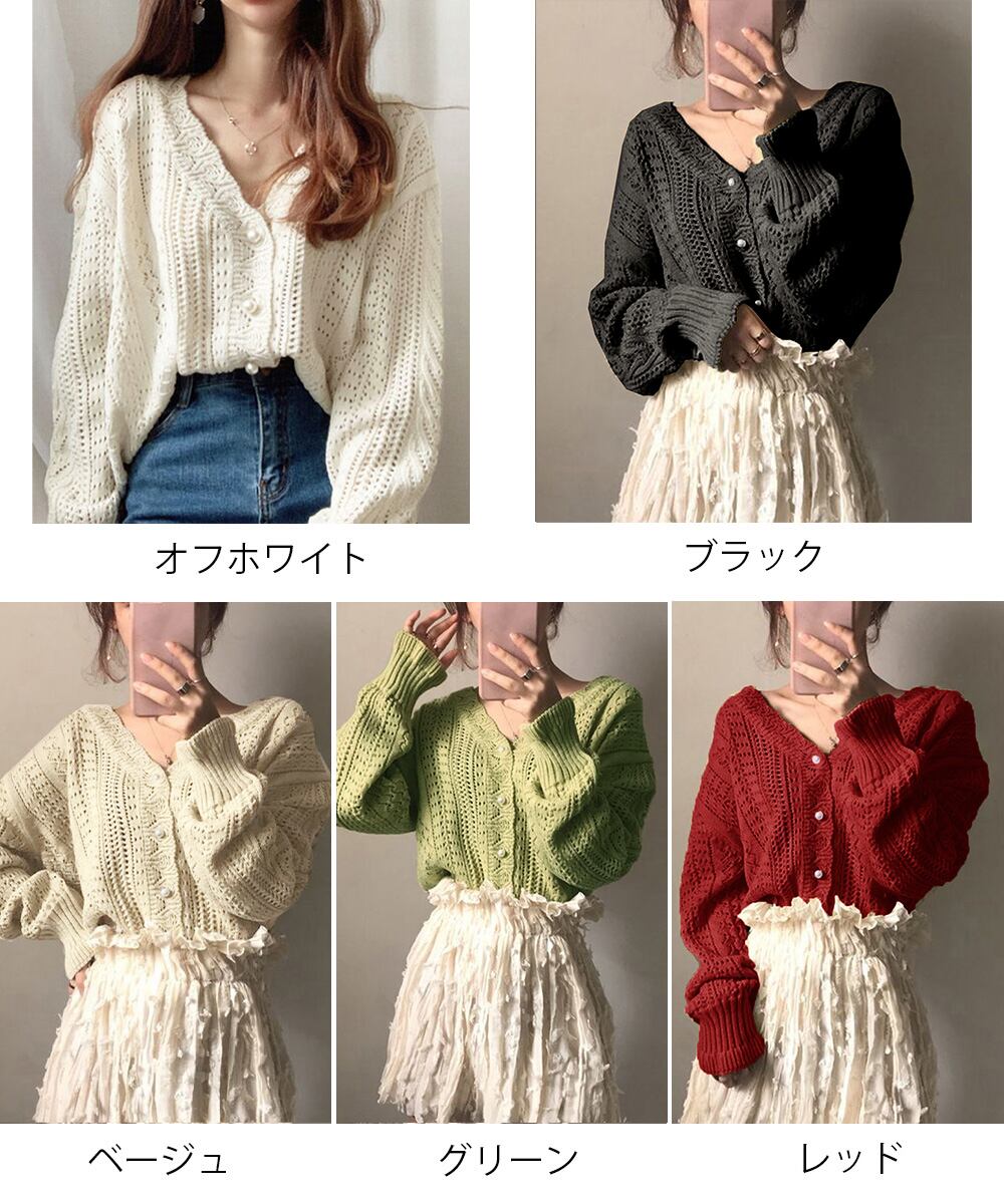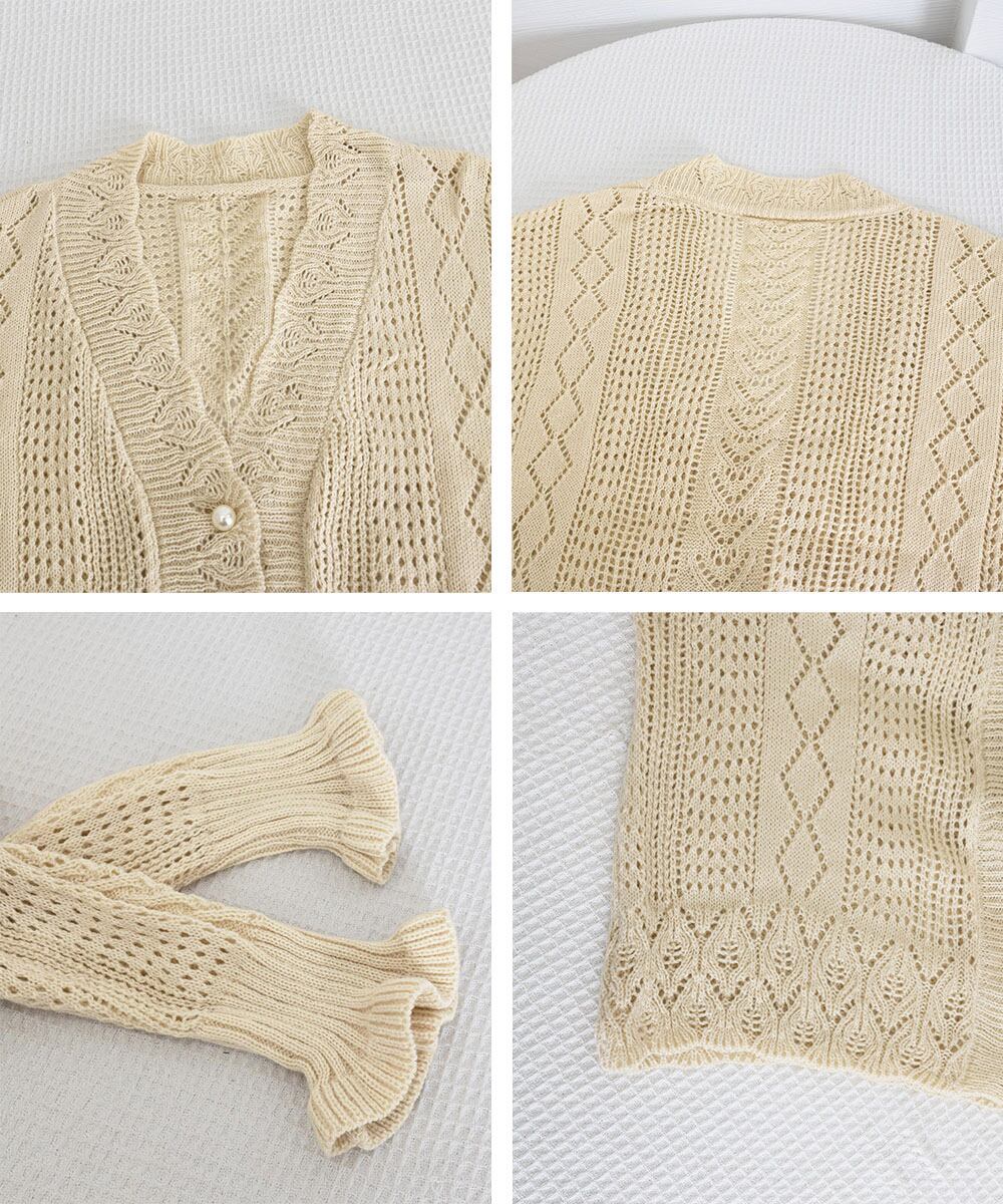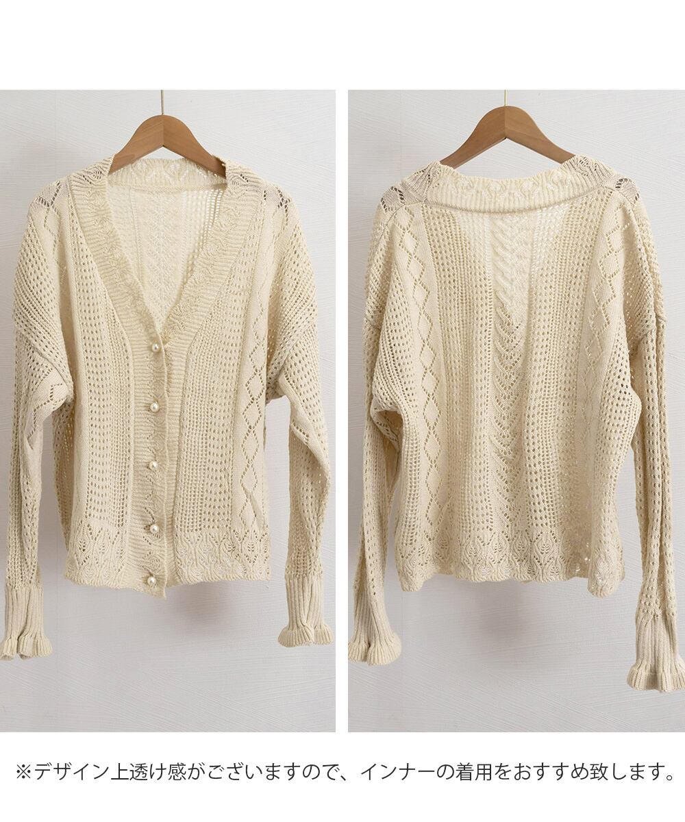 【日本倉庫からの発送】 透かし編みニットカーディガンパールボタン #[87WY-003_17800]【送料込み】【250712】