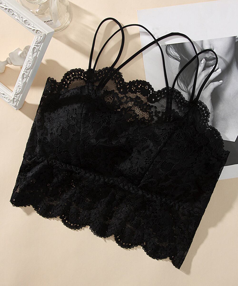 レディース ショート丈 インナーキャミソール おしゃれ 花柄レース ノンワイヤーブラキャミ ブラトップ肌着 細肩紐キャミ