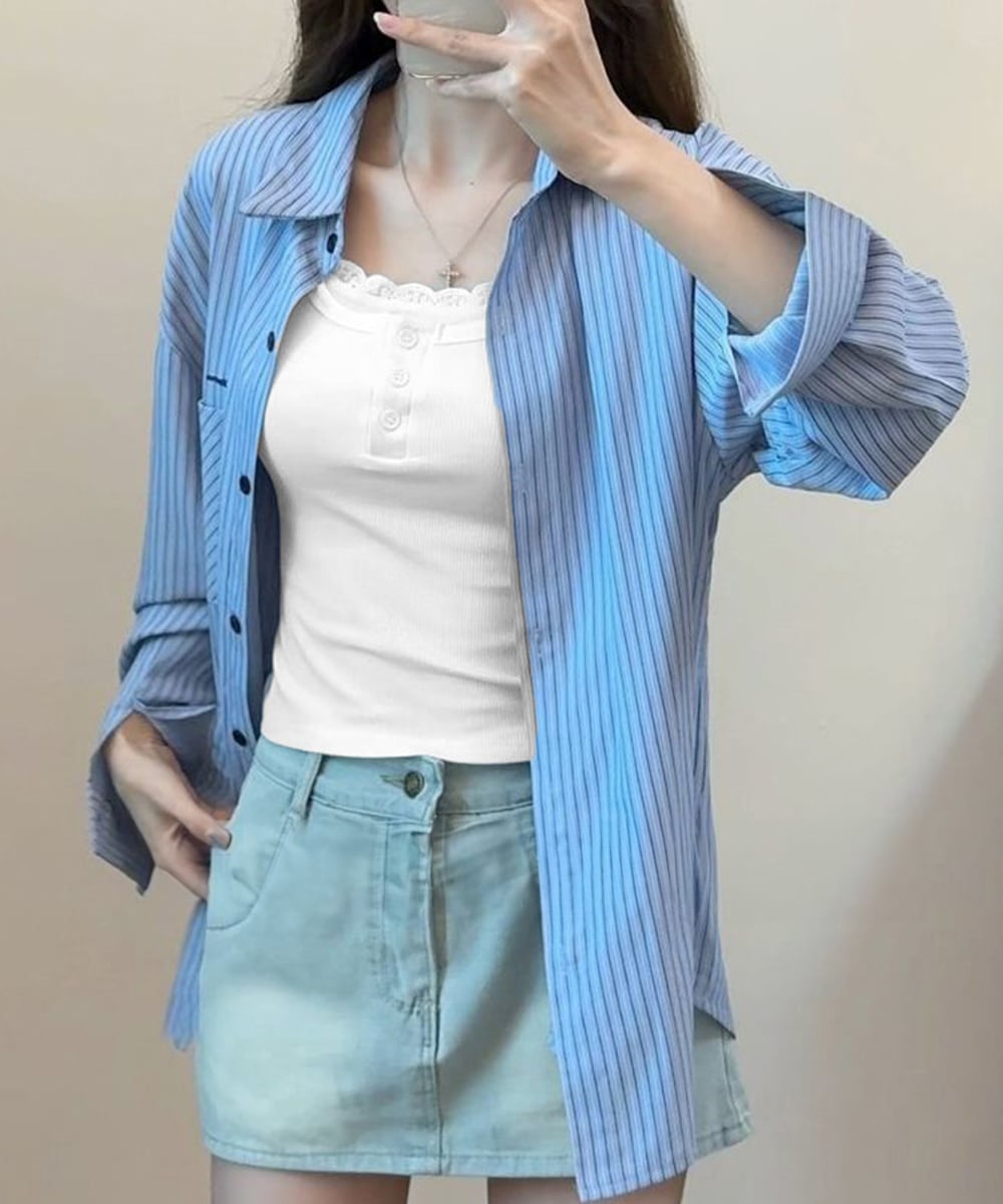 シャツやジャケットを羽織るだけで、大人っぽいリラックスコーデが完成