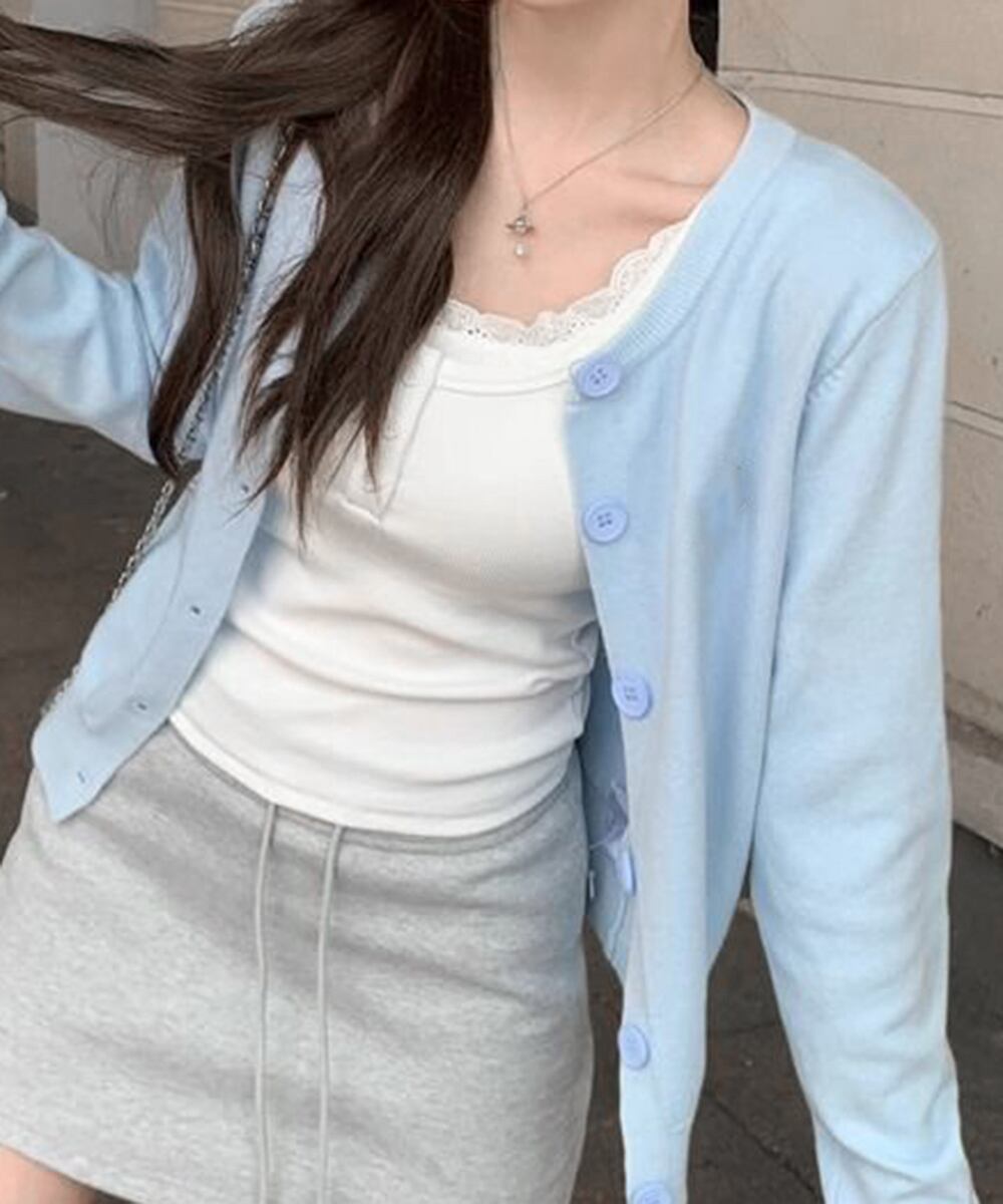 ネックラインにあしらわれた繊細なレースが、シンプルな中に華やかさをプラス