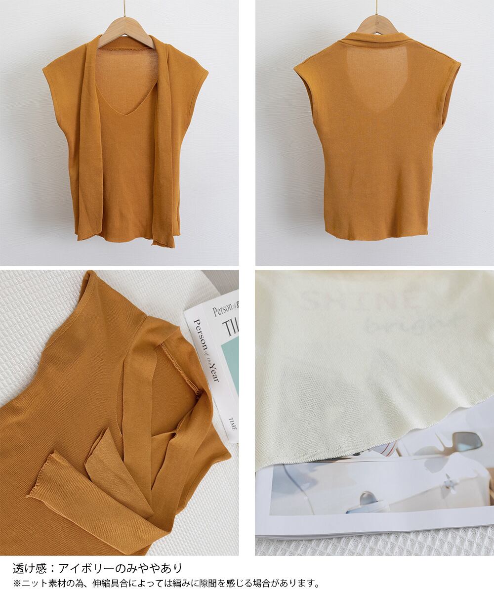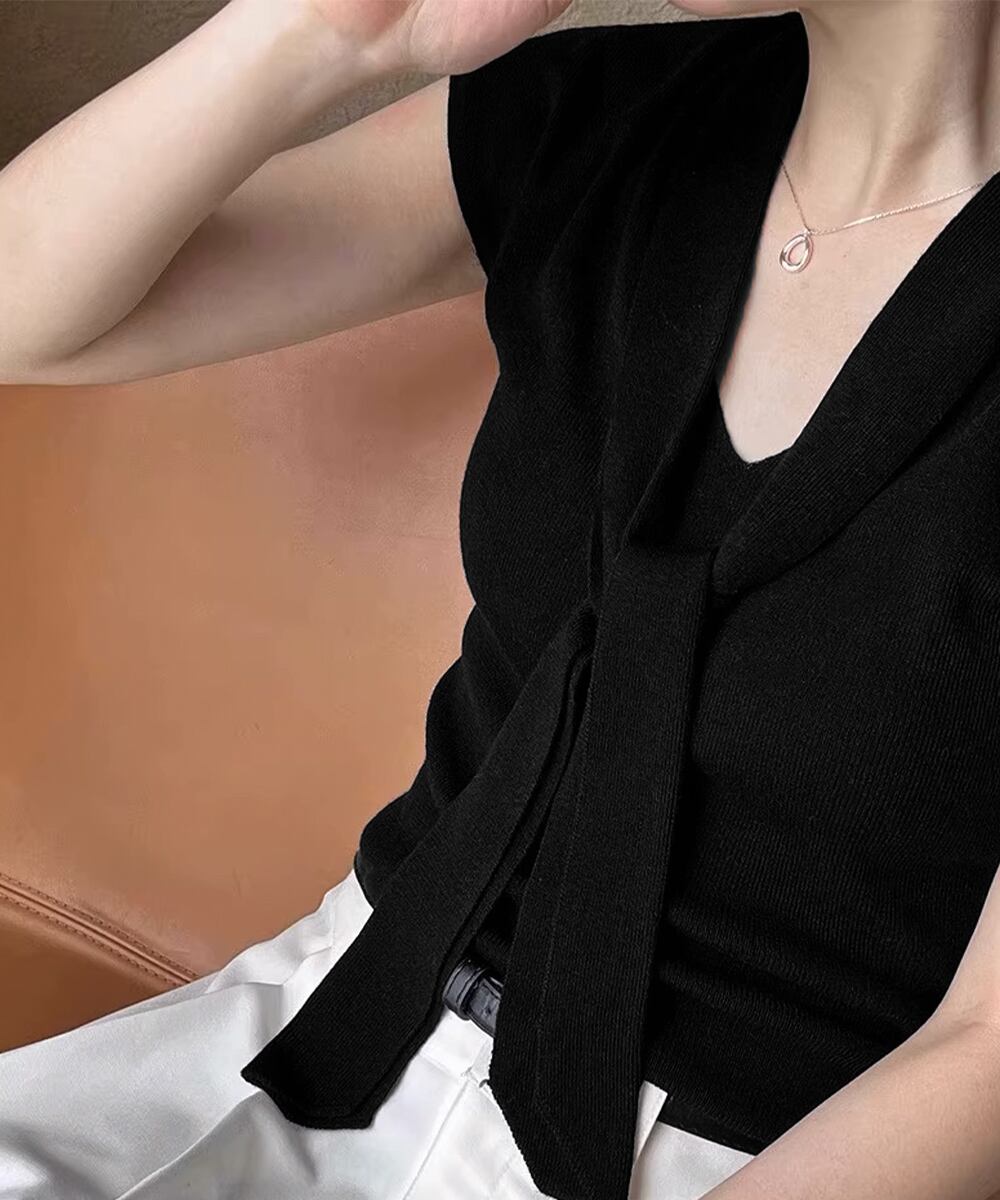 【日本倉庫からの発送】 ボウタイサマーニット Vネックトップス #[24TPS-041_13500]【送料込み】【250712】