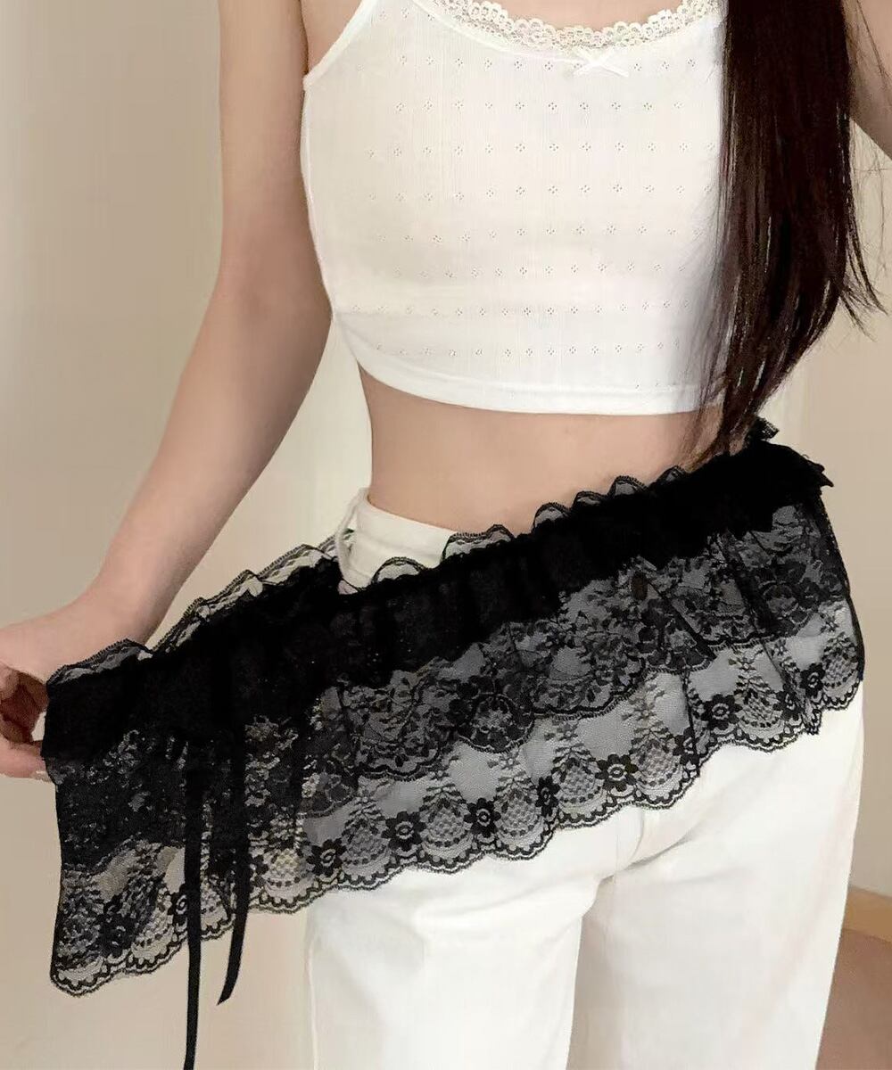 シーズンレス小物黒 フェミニン付け裾白 フリルヒップカバー