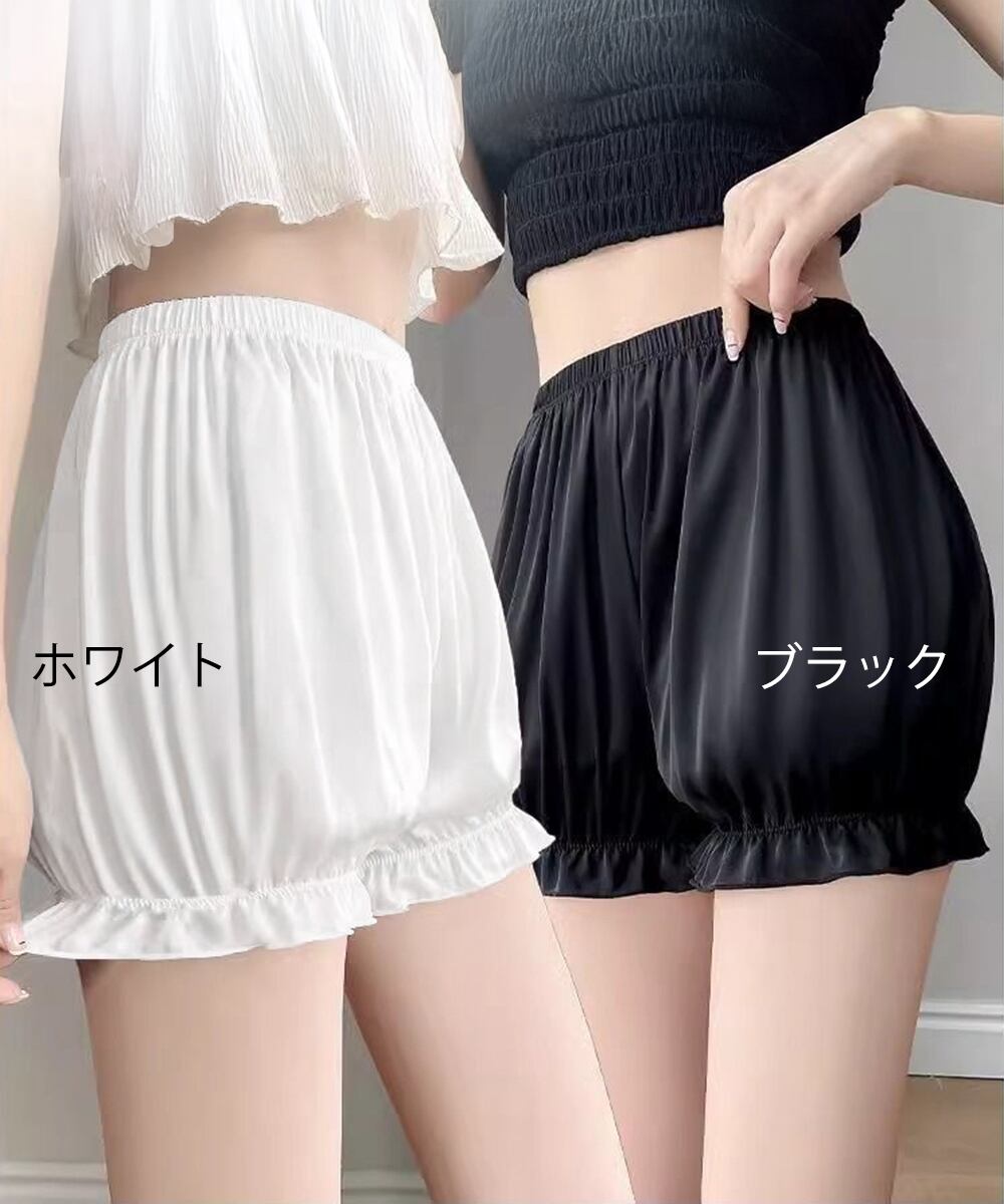 春夏ペチコートショートパンツレディース ウエストゴムタップパンツ チラ見え防止インナーパンツ またずれ防止バルーンパンツ