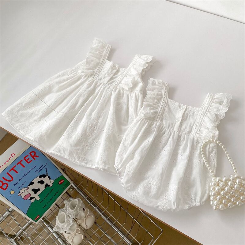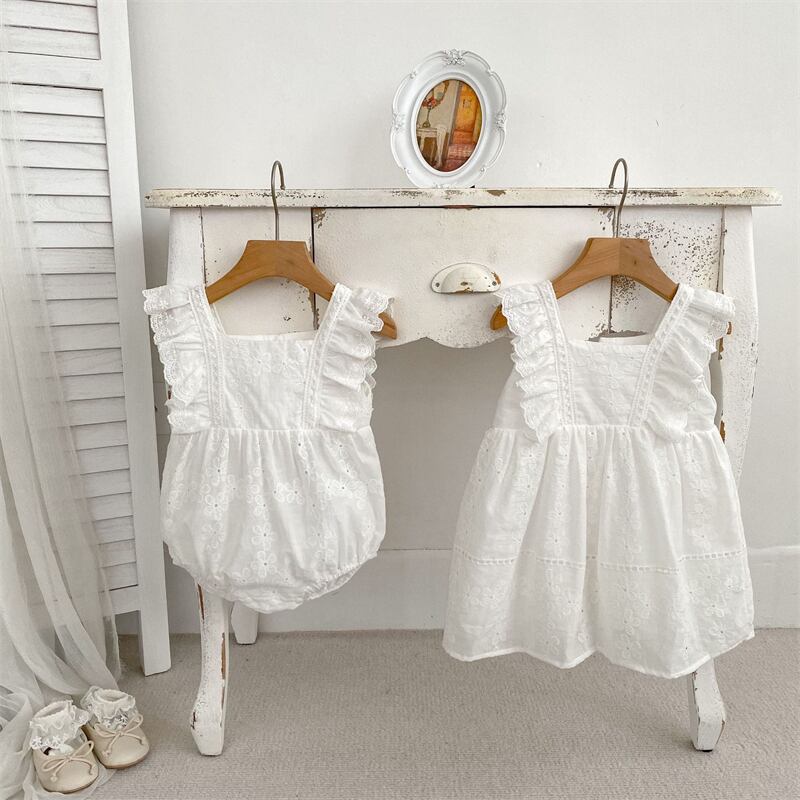 【海外からの取り寄せ】2025夏新作 子供服 姉妹服 レース フラッタースリーブ ロンパース ワンピース 2タイプ 可愛い #[ckd1094701_19100]【送料込み】【250823】