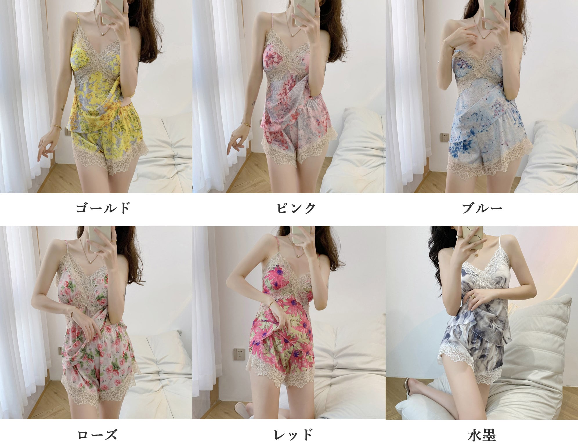 【海外からの取り寄せ】2023新作 レディース レース ルームウェア ネグリジェ パジャマ キャミソールインナー シルク調 #[set056_15800]【送料込み】【250615】
