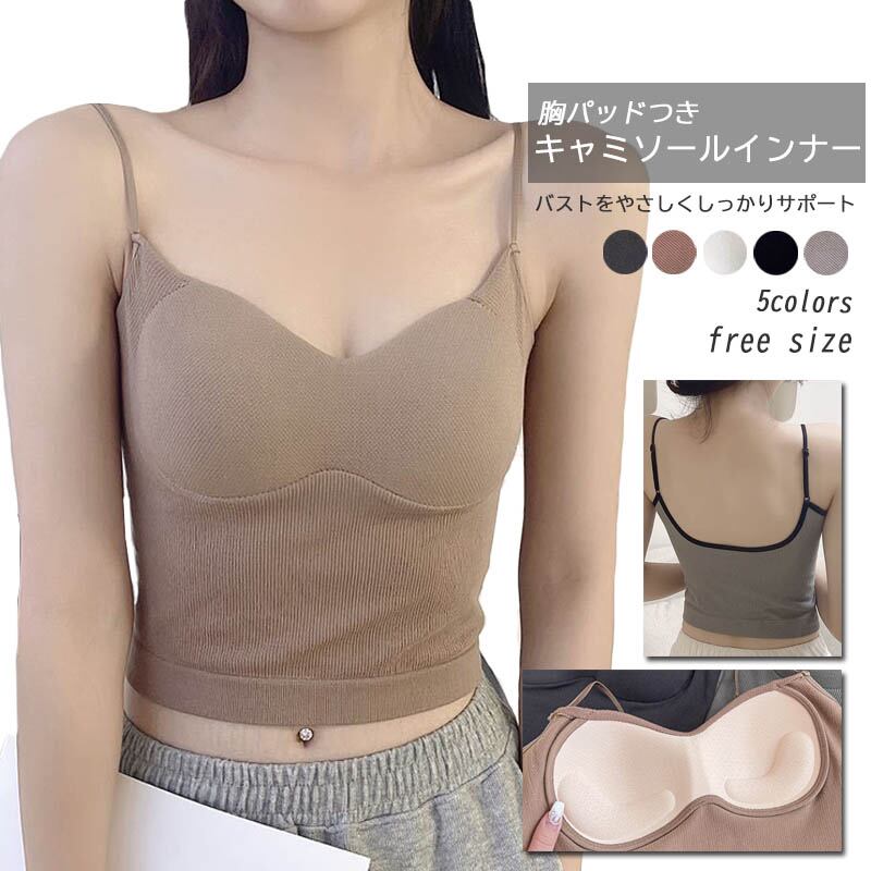 【海外からの取り寄せ】2022新作 レディース キャミソール ブラトップ ノンワイヤー スチールリムなし インナー 胸バッドつき #[inner106_7800]【送料込み】【250716】