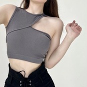 【海外からの取り寄せ】2023新作 レディース ワンショルダー ブラ付きキャミソール 見せブラ ノンワイヤー スチールリムなし #[inner144_8800]【送料込み】【250716】