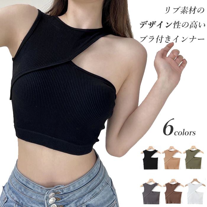・リブ素材のデザイン性の高いブラ付きインナーです。