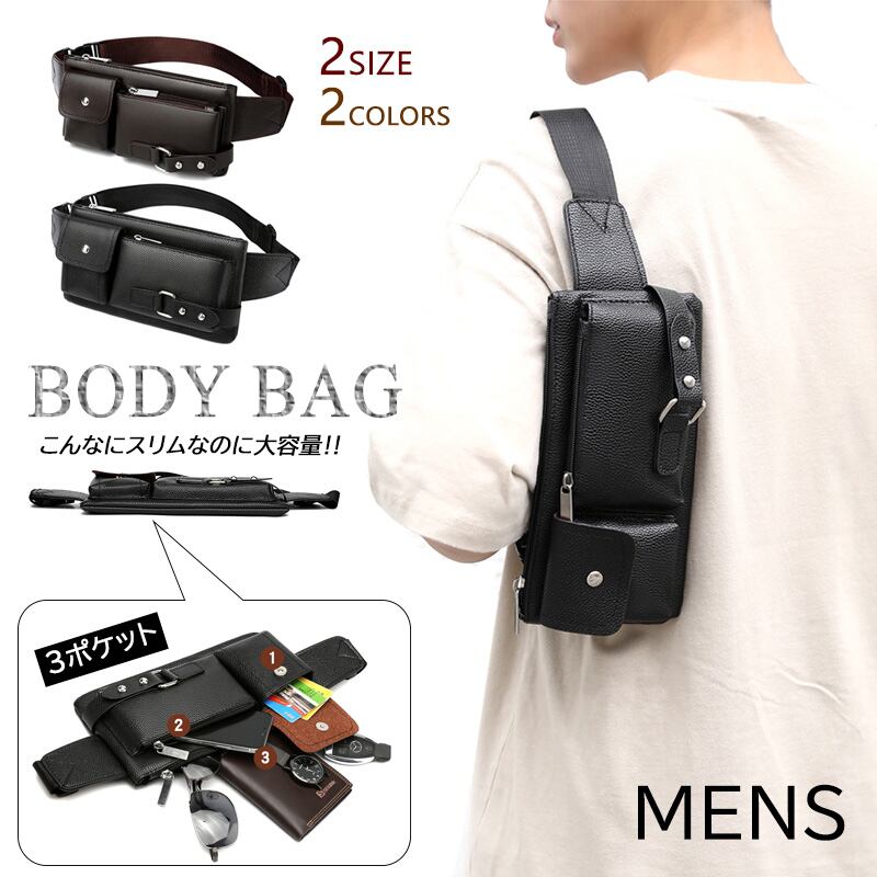 【海外からの取り寄せ】ボディバッグ メンズ ショルダーバッグ ワンショルダー 肩掛け ウォーキング 軽量 スリム 大容量 レザー風 #[m-bag050_5300]【送料込み】【250617】