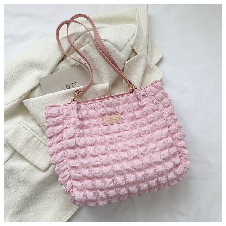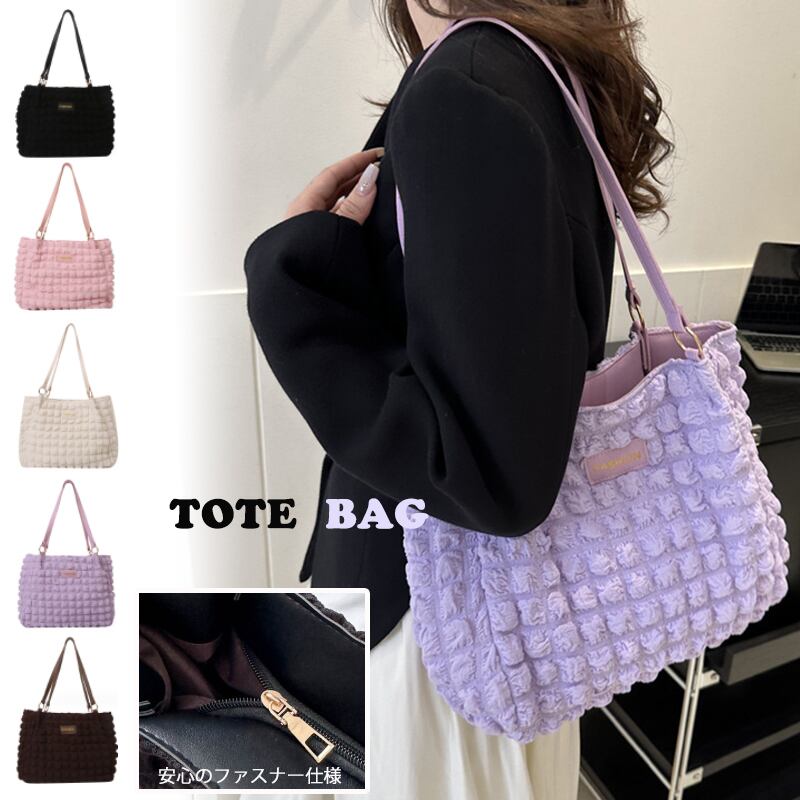 【海外からの取り寄せ】2023新作 ショルダートートバッグ ポップコーン ワッフル サブバッグ 軽量 ファスナー 可愛い ピンク #[bag1227_8900]【送料込み】【250915】