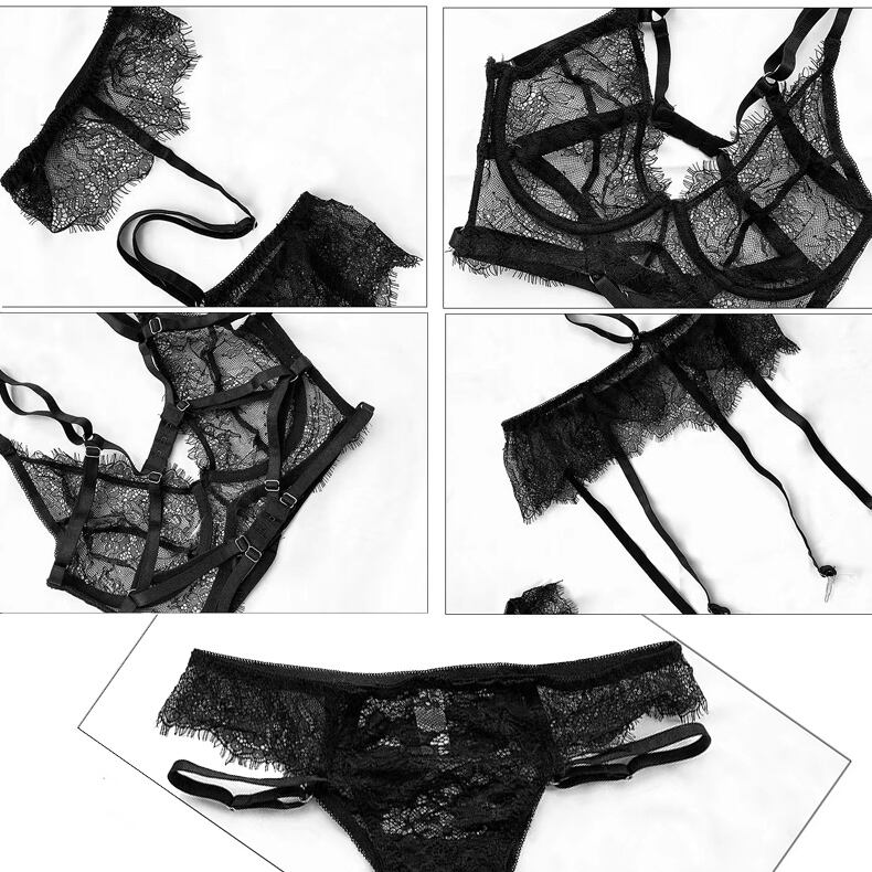 【即日出荷】メッシュストッキングとガーター付 ブラとショーツセット セクシーランジェリー【 #[3743_17000]】【送料込み】【250914】