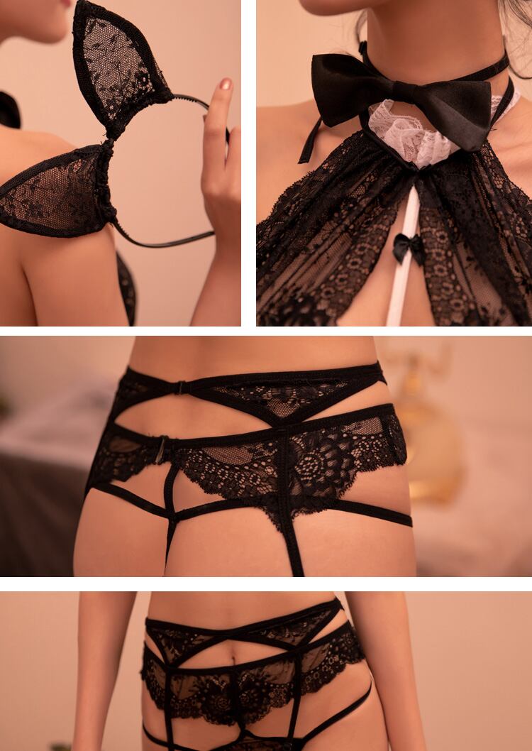 【即日出荷】猫耳付 ストッキング ガーターベルト ブラ&ショーツ セクシーランジェリー【 #[3319_17000]】【送料込み】【250914】