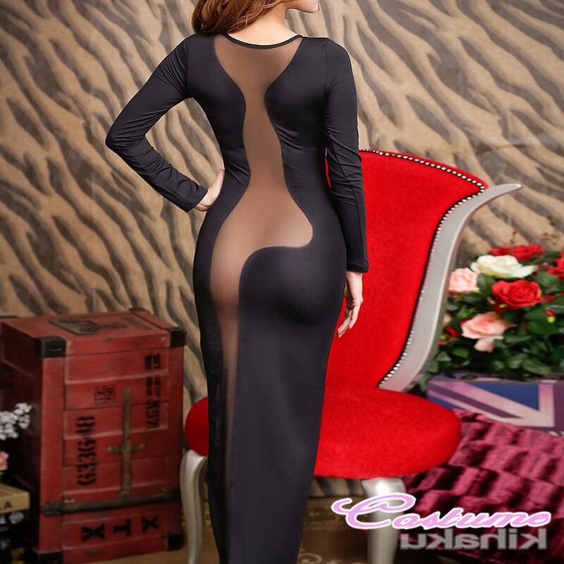 【即日出荷】長袖 黒 ブラック ロング丈ドレス ボディコン【 #[8593_18300]】【送料込み】【251210】